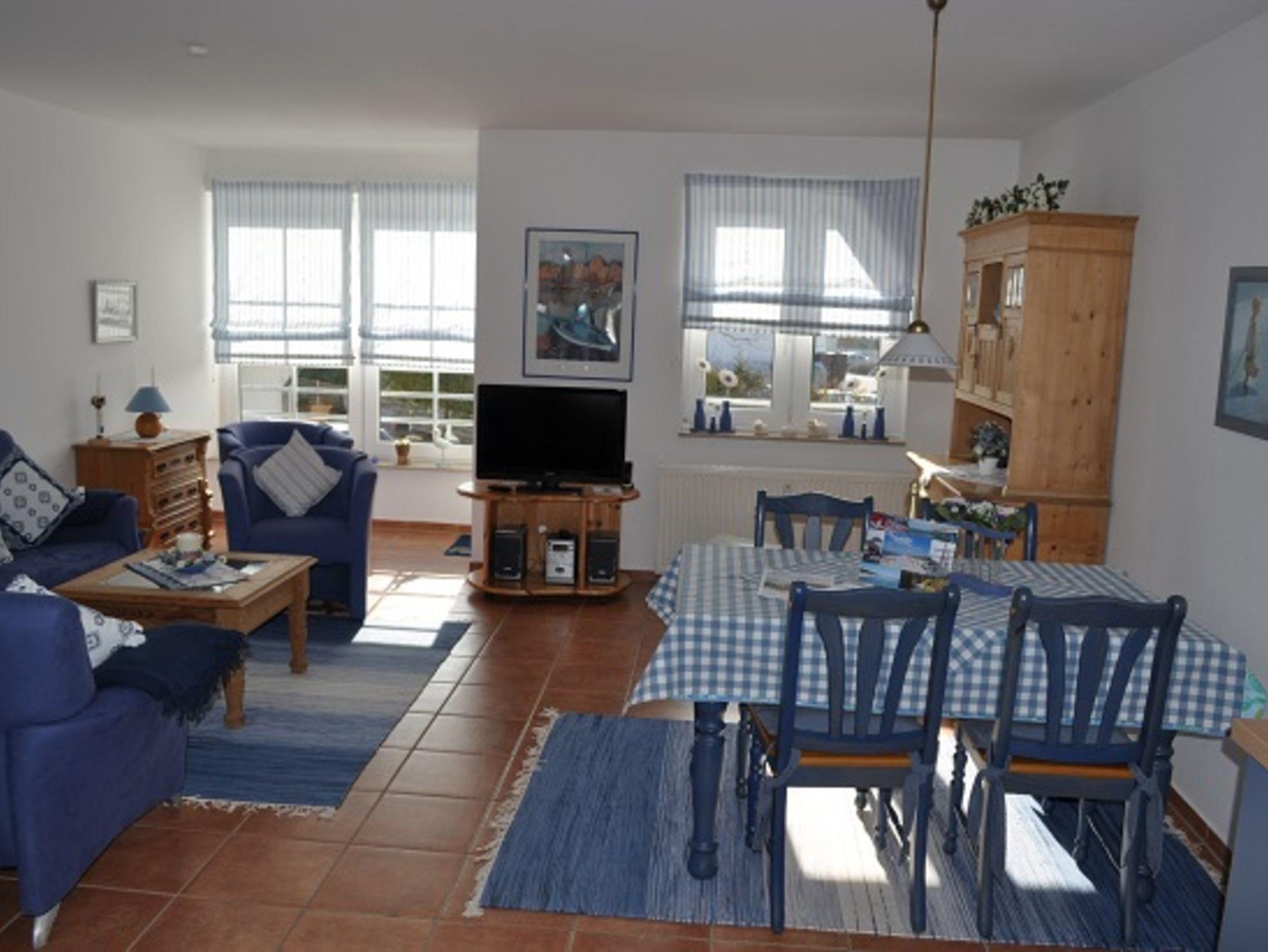 Die 50 Quadratmeter große Ferienwohnung Möwennest liegt im ersten Stock mit Süd / West - Balkon. Über dem Balkon dient eine Kasettenmarkise mit Funkmotor als Sonnenschutz. Diese gemütliche, mit Liebe zum Detail eingerichtete Ferienwohnung, bietet Platz für 2 Erwachsene und 1 Kind.