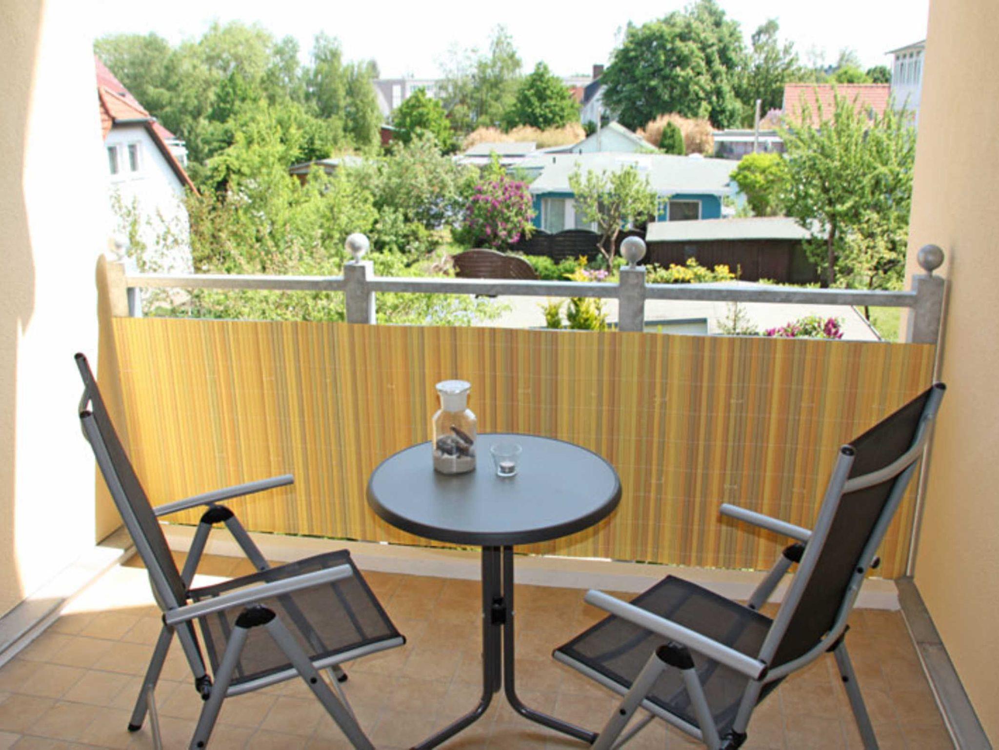 • Balkon: Ostausrichtung, mit Tisch und Stühle, Balkonsichtschutz
