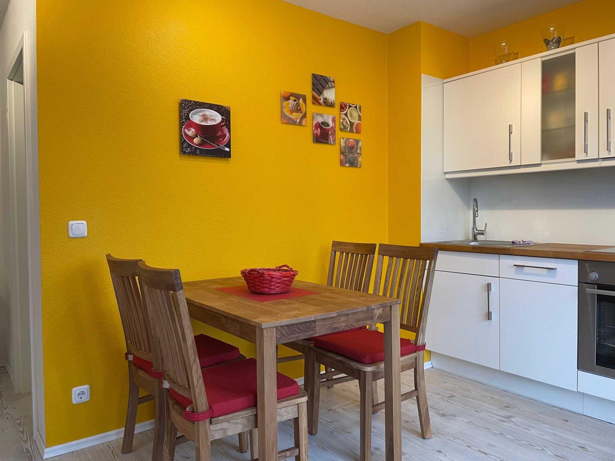 • Küche und Essbereich für 4 Personen offen zum Wohnzimmer, komplett eingerichtete Einbauküche mit