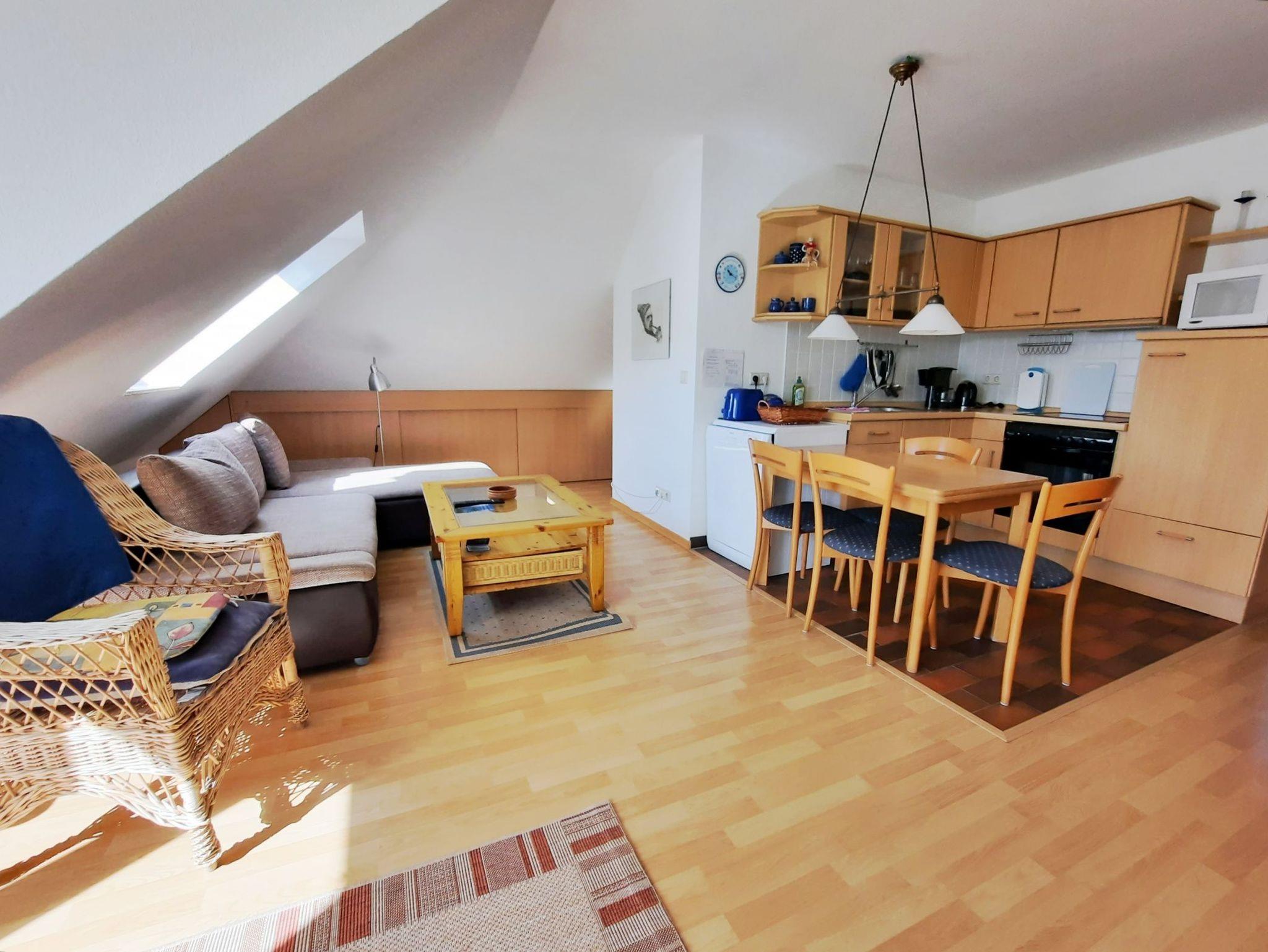 Ihre freundliche Unterkunft (ca. 50 qm) ist für 2-4 Personen geeignet und verfügt über ein Wohnzimmer mit einer Schlafcouch, einem Radio mit CD-Player und einen Fernseher.
