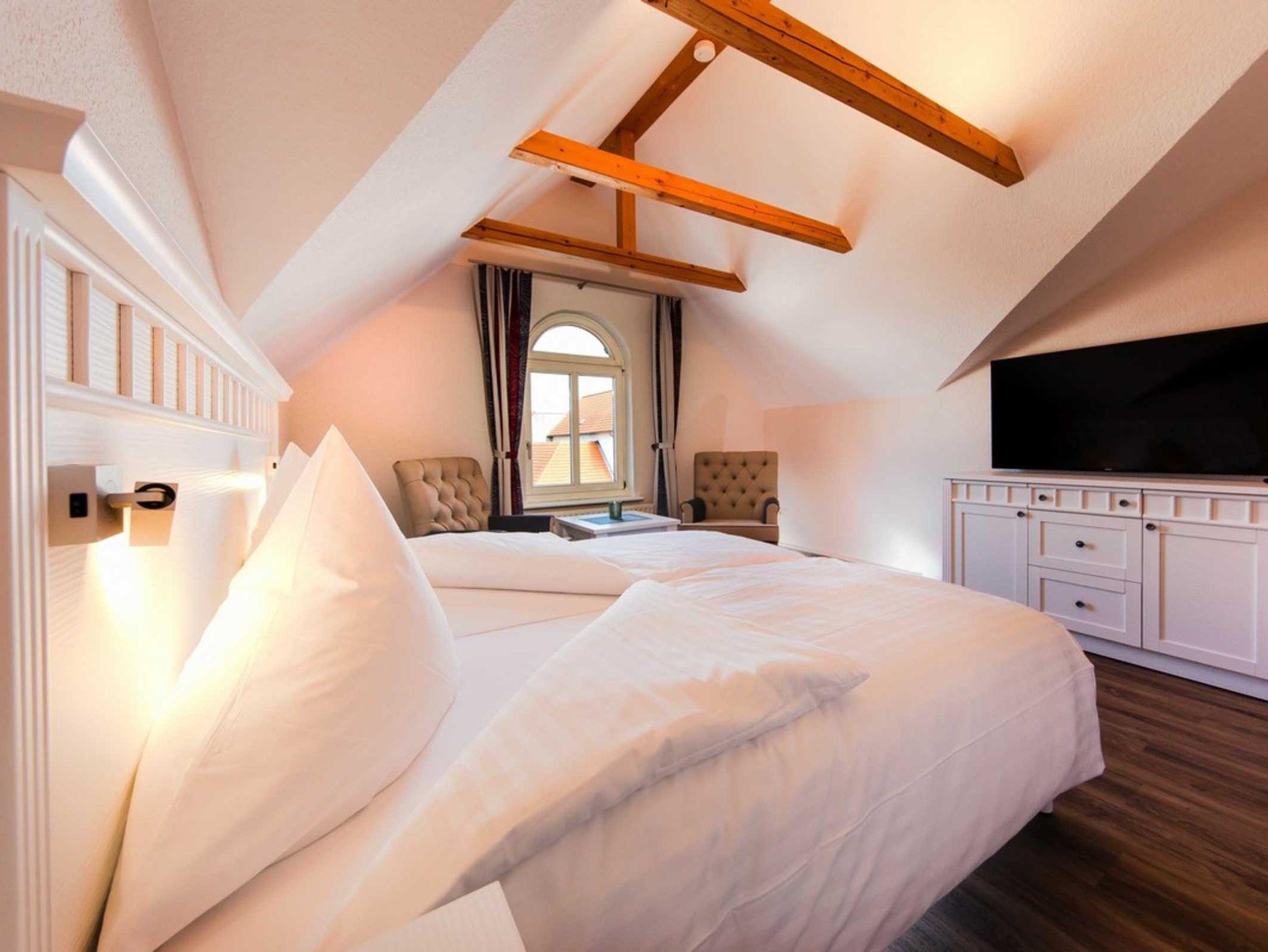 Ein lauschiges Urlaubsnest für 2 Personen - dieses Appartement. Direkt unterm Dach bietet es unseren Feriengästen einen kombinierten Wohn- und Schlafbereich mit zwei gemütlichen Sesseln, eine voll ausgestattete Küche mit Essplatz für ein gemütliches Mahl sowie ein Badezimmer mit Dusche, Waschtisch, WC, Handtuchheizkörper und Föhn.