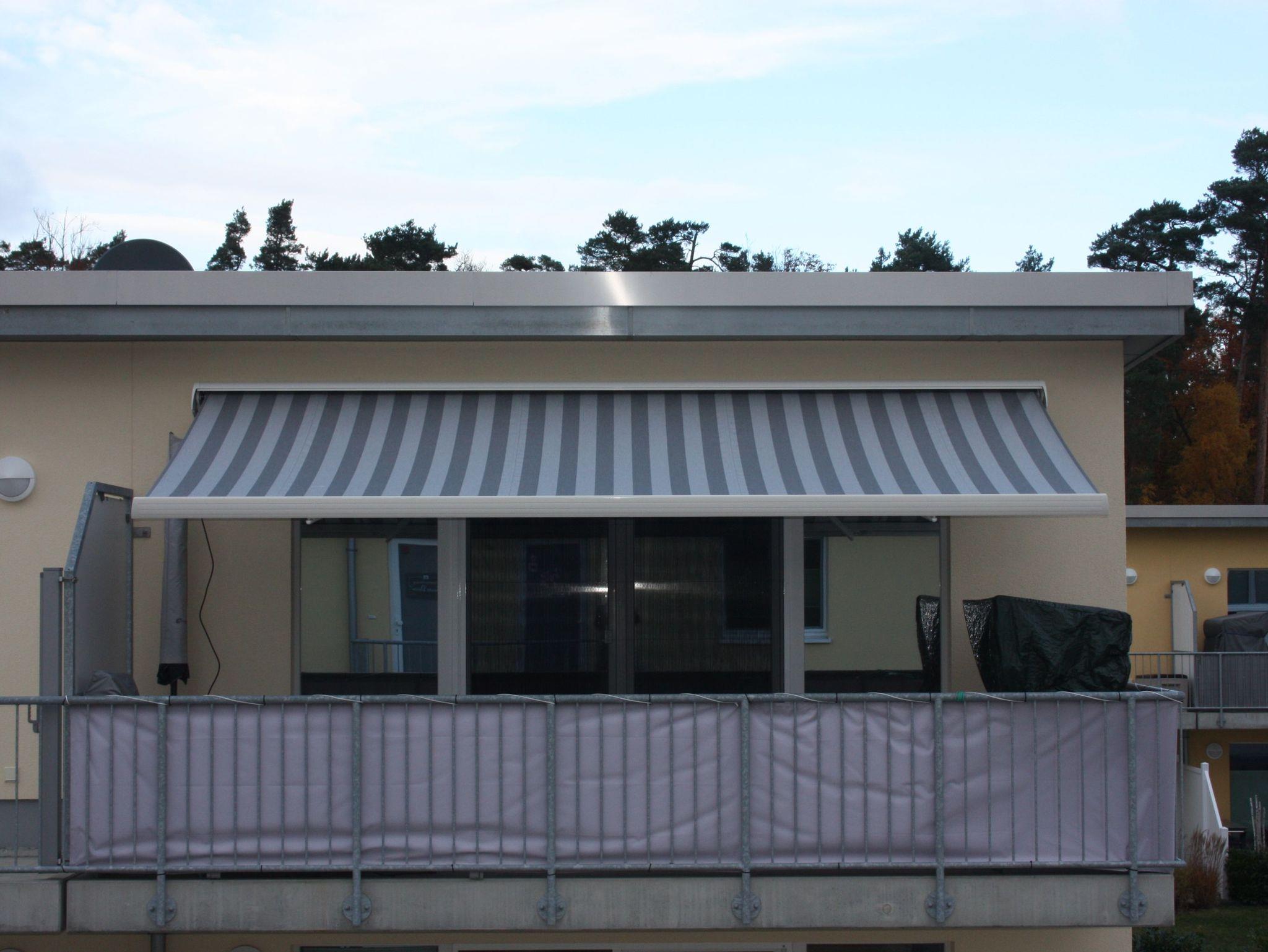 Strandkorb und einer Markise für den ganzen Balkon ausgestattet, dass Sie den Balkon genießen