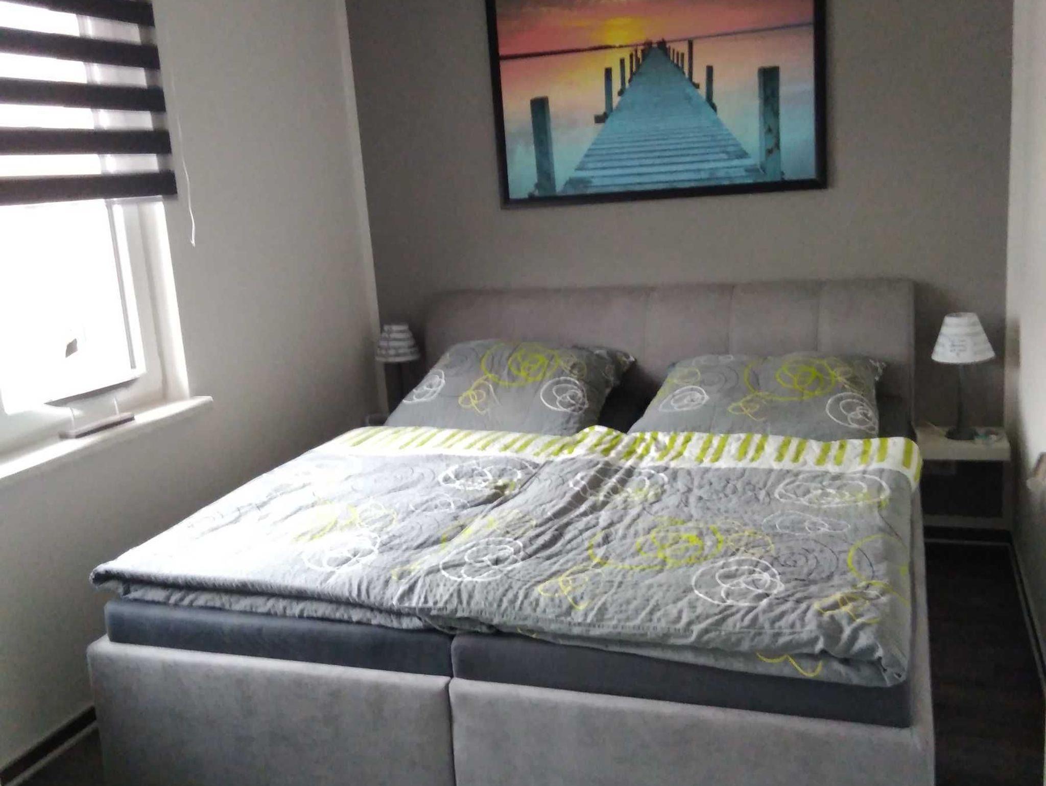 Im Schlafzimmer befindet sich ein Doppelbett 1,80m x 2,00m (Polsterbett),