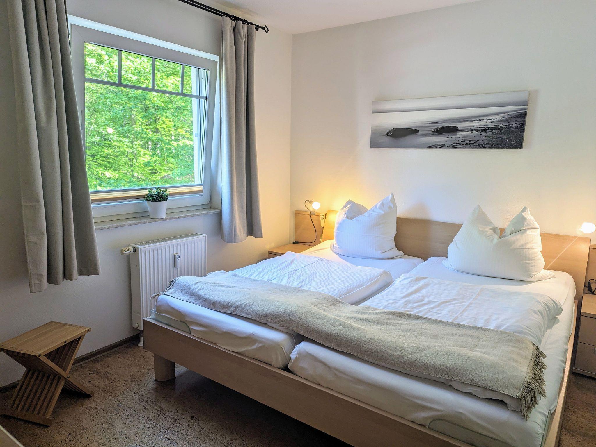 • Schlafzimmer: Doppelbett mit zwei Einzelmatratzen (90x200cm) im separaten Schlafzimmer