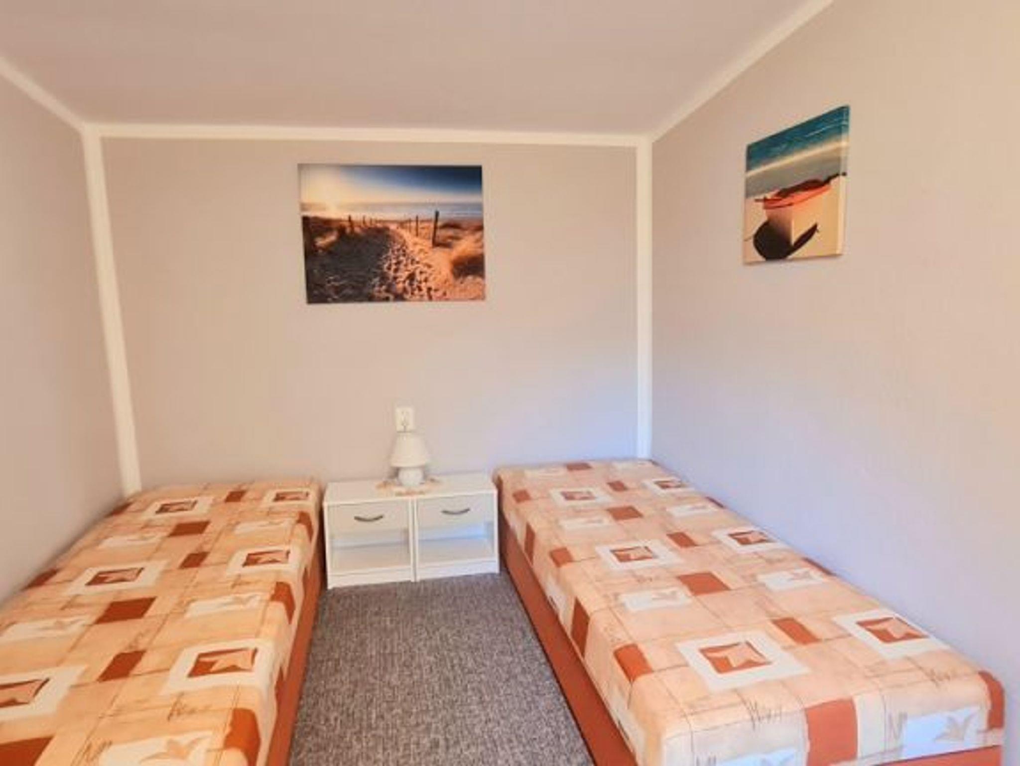Es verfügt über einen Wohnbereich mit Fernseher und WLAN, zwei getrennten Schlafzimmern (Doppelbett und zwei Schlafliegen), einer Küche mit Geschirrspüler, Kühlschrank, Mikrowelle und Backofen sowie ein Bad mit Dusche/WC. Handtücher und Bettwäsche sind im Übernachtungspreis bereits enthalten.