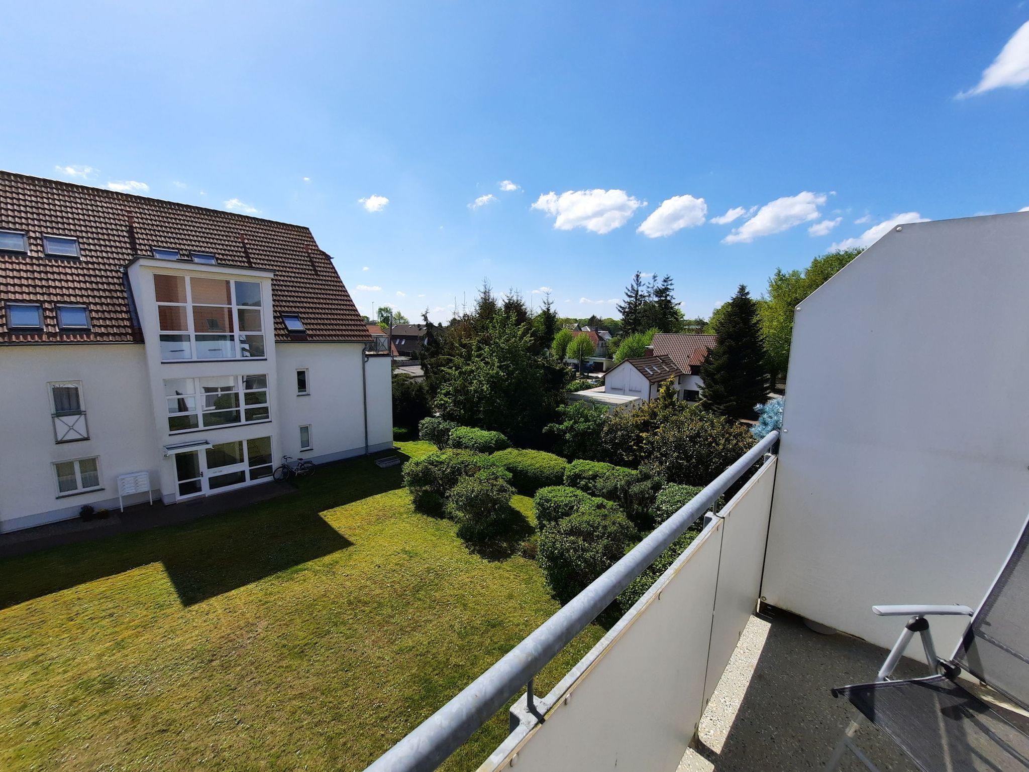 Im freundlichen Wohnzimmer befinden sich eine Eck-Couch und ein Fernseher. Vom Wohnzimmer aus gelangen Sie auf den schönen Süd-Balkon, welcher mit Gartenmöbeln ausgestattet ist.