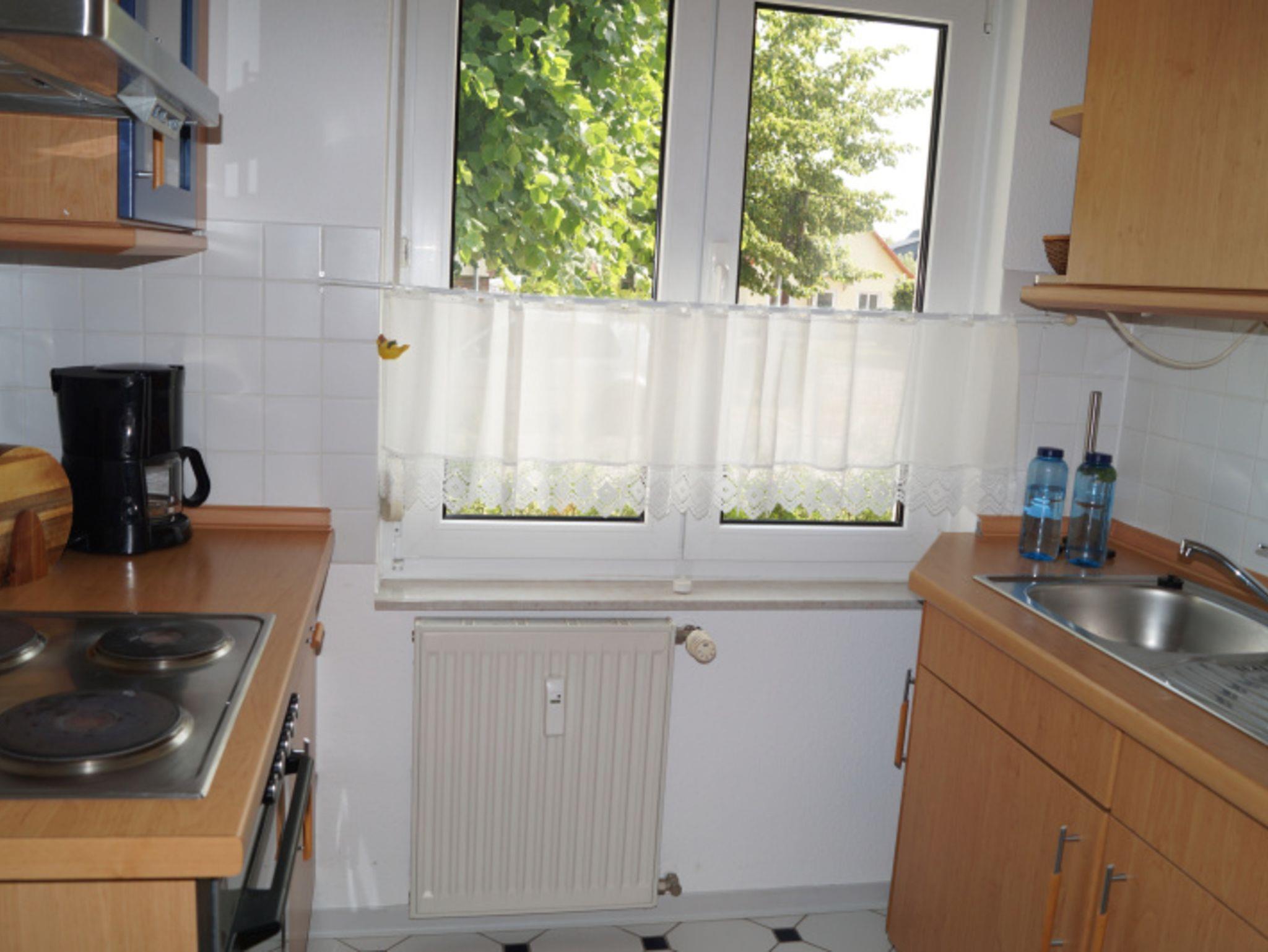 In der Küche stehen Ihnen u .a. ein Backofen, 4 Kochplatten, ein Kühlschrank, eine Kaffeemaschine und ein Wasserkocher zur Verfügung.