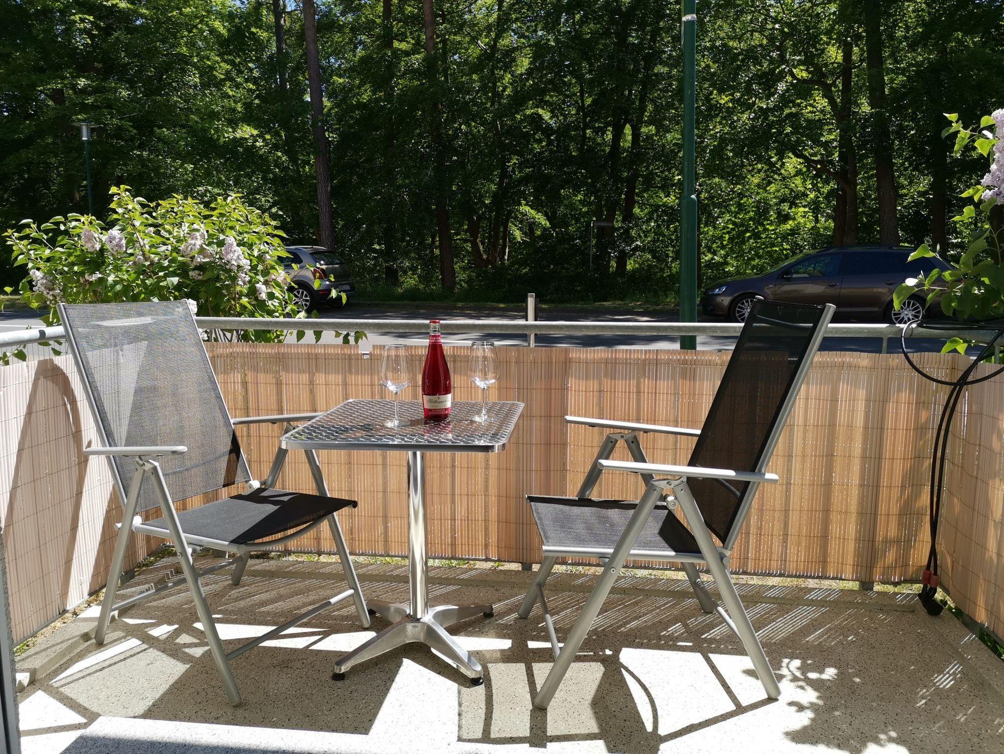 Zu der Wohnung gehört außerdem Balkon (Süd-West-Lage) mit Gartenmöbeln.