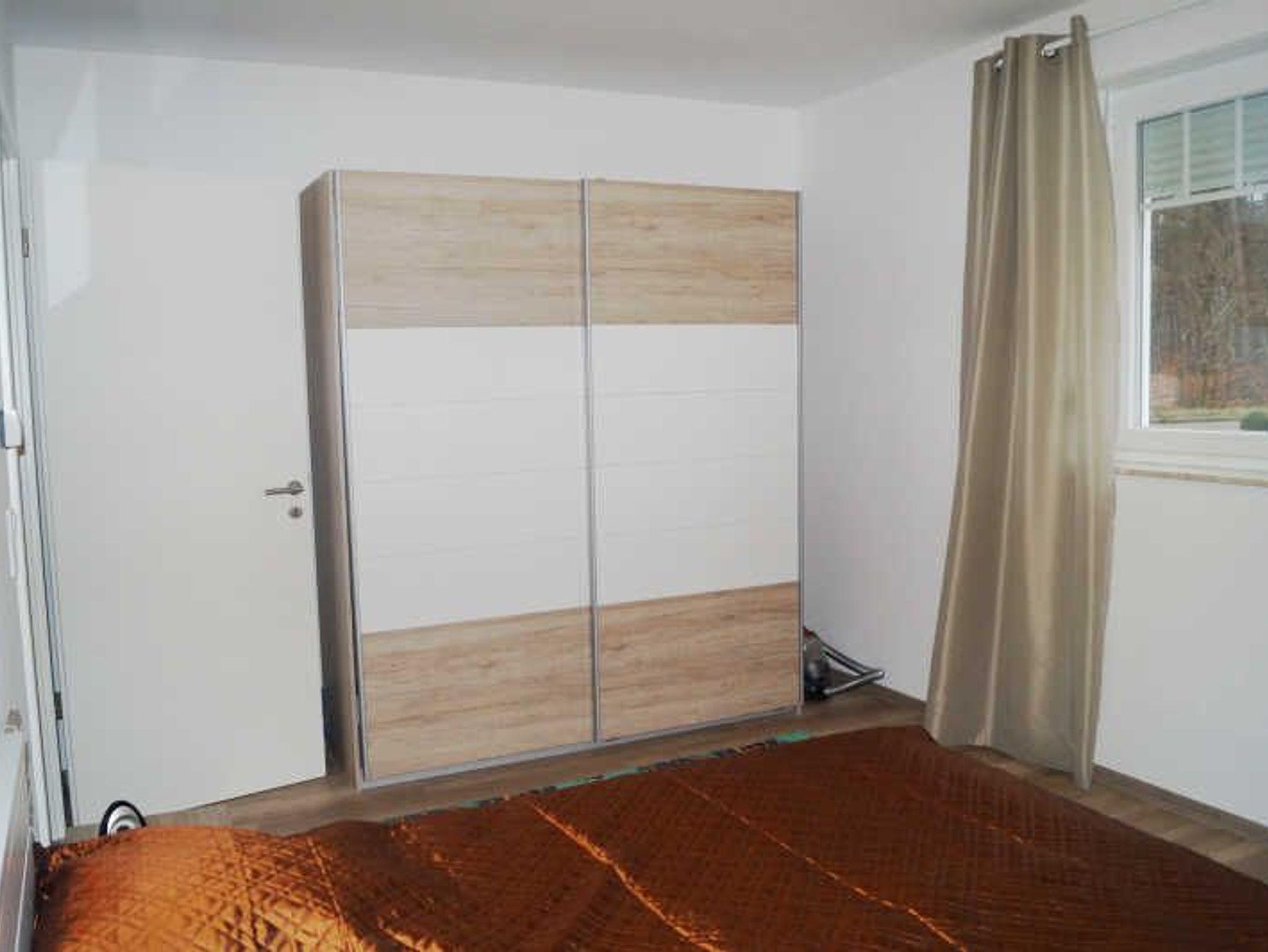 Das Schlafzimmer verfügt über ein Doppelbett (180x200), einen Flachbildfernseher und über einen großen Kleiderschrank.