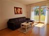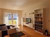 • Wohnzimmer: Gemütliche Schlafcouch aus Textil mit einer Fläche von 140x200 cm, Tisch, Sideboard, TV, DVD-Player, CD-Radio, Leselampe