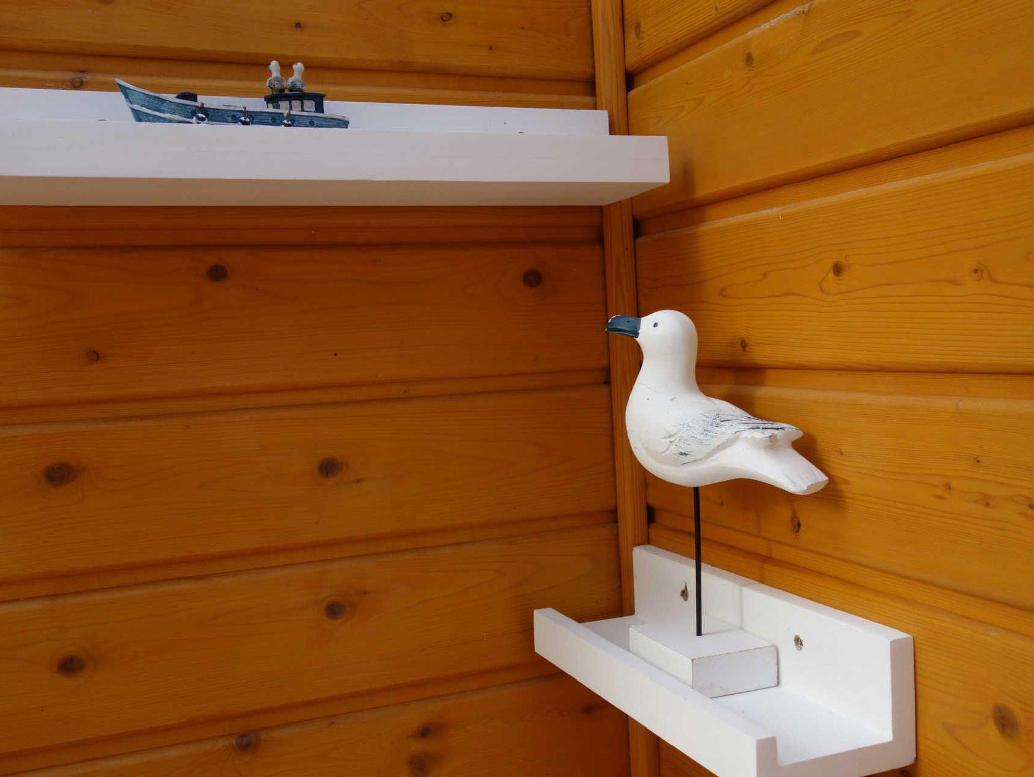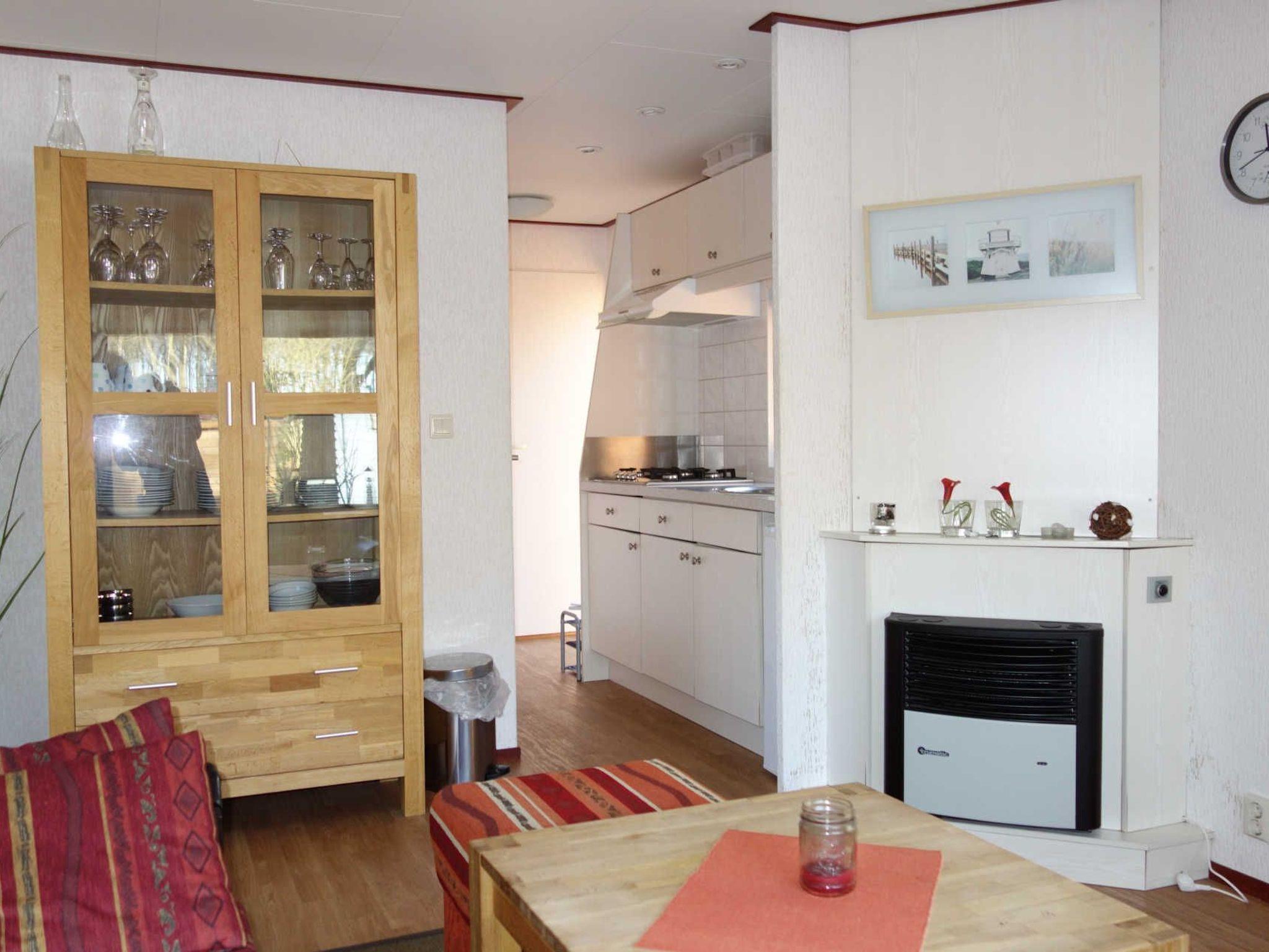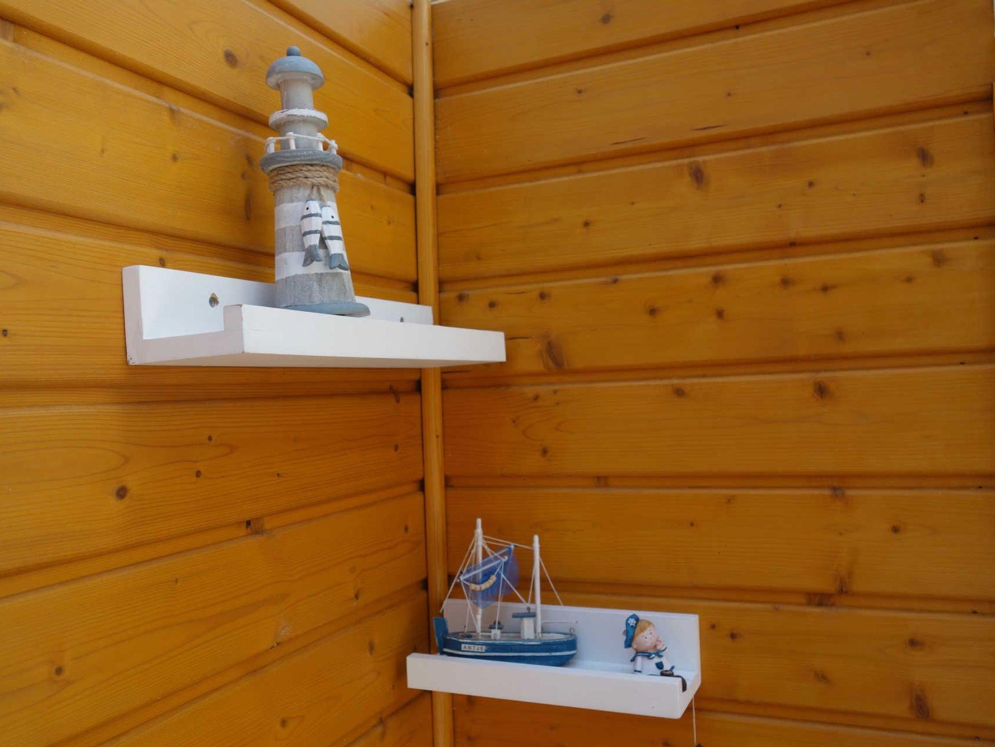 Im Ferienhaus befinden sich 2 kleine Schlafzimmer (eines mit frz. Bett, eines mit Etagenbett), ein Wohnzimmer mit Couch und Fernseher, ein Bad mit Dusche und WC, ein Esszimmer mit Esstisch und Stühle und eine Miniküche mit Kühlschrank.