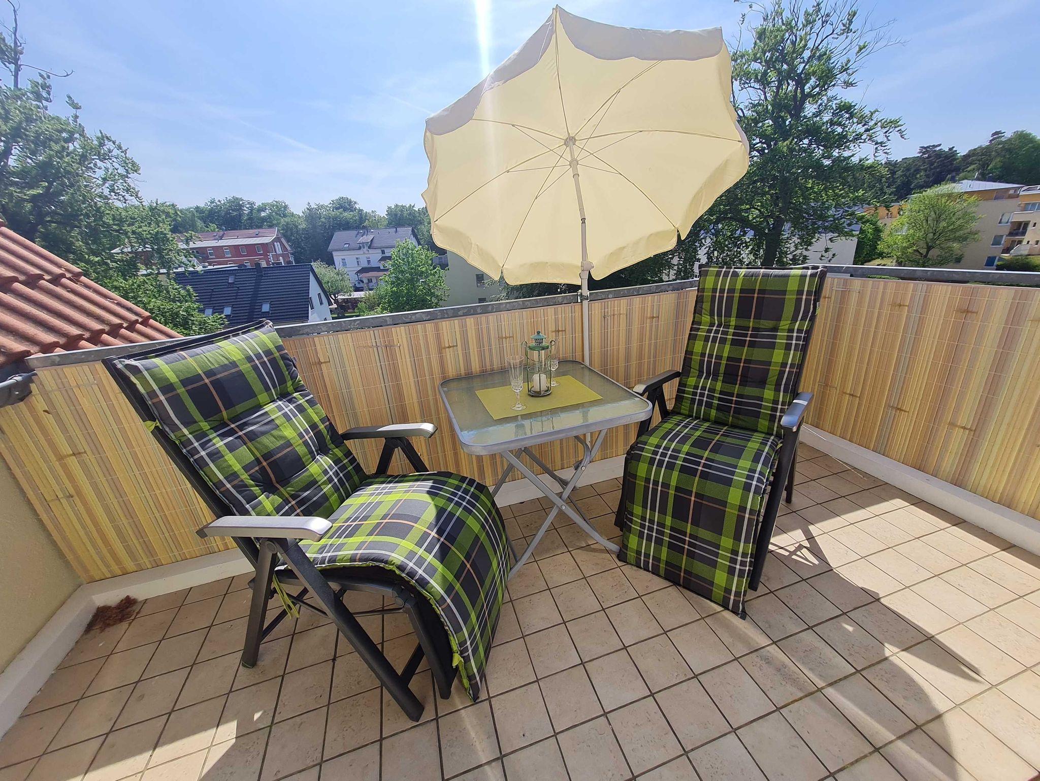 • Balkon: Südausrichtung, Balkonmöbel, Balkonsichtschutz, Sonnenschirm