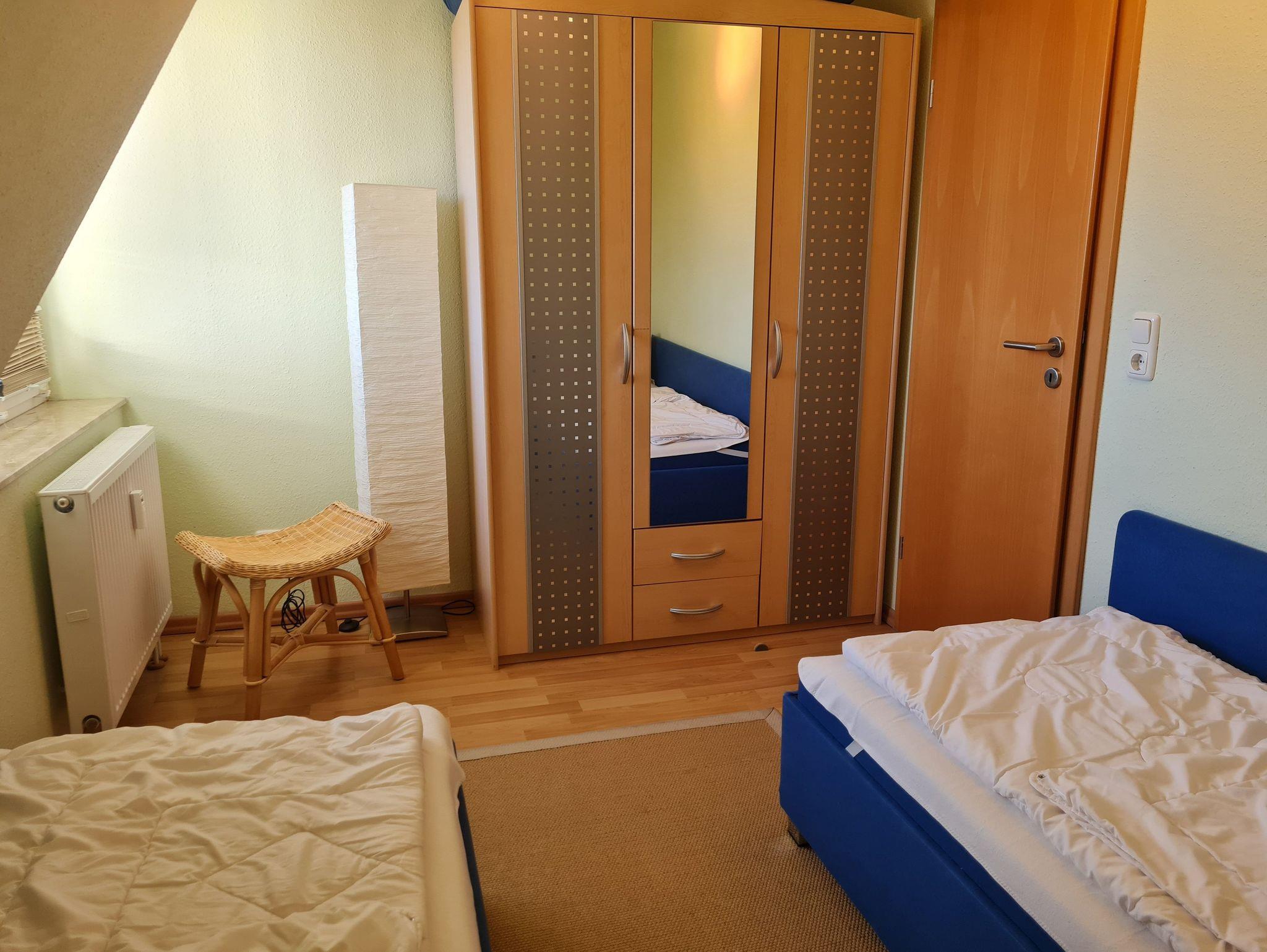 • II Schlafzimmer: zwei Einzelbetten (je 2,00 m x 0,80 m), Kleiderschrank, Jalousien zur Verdunklung