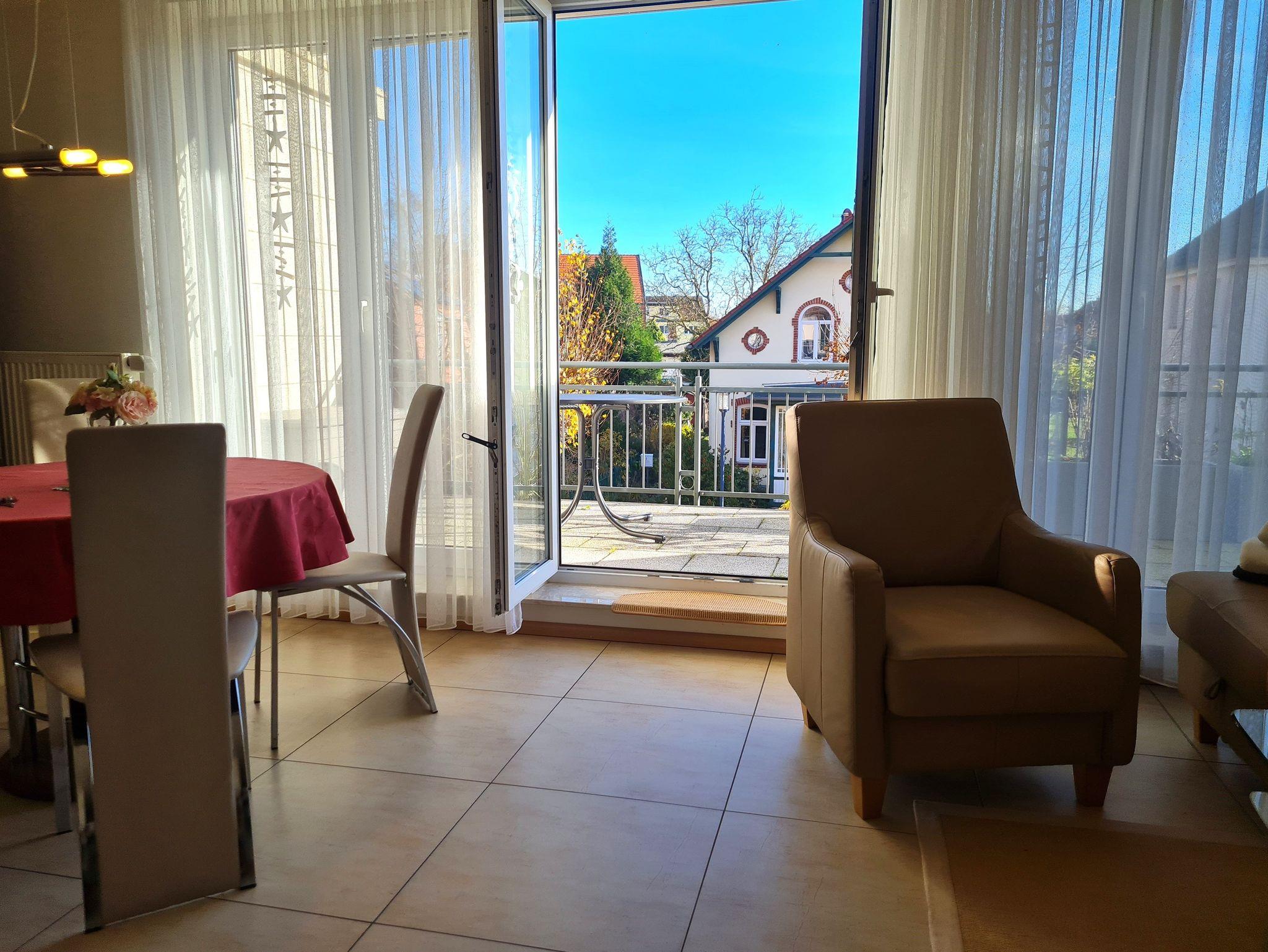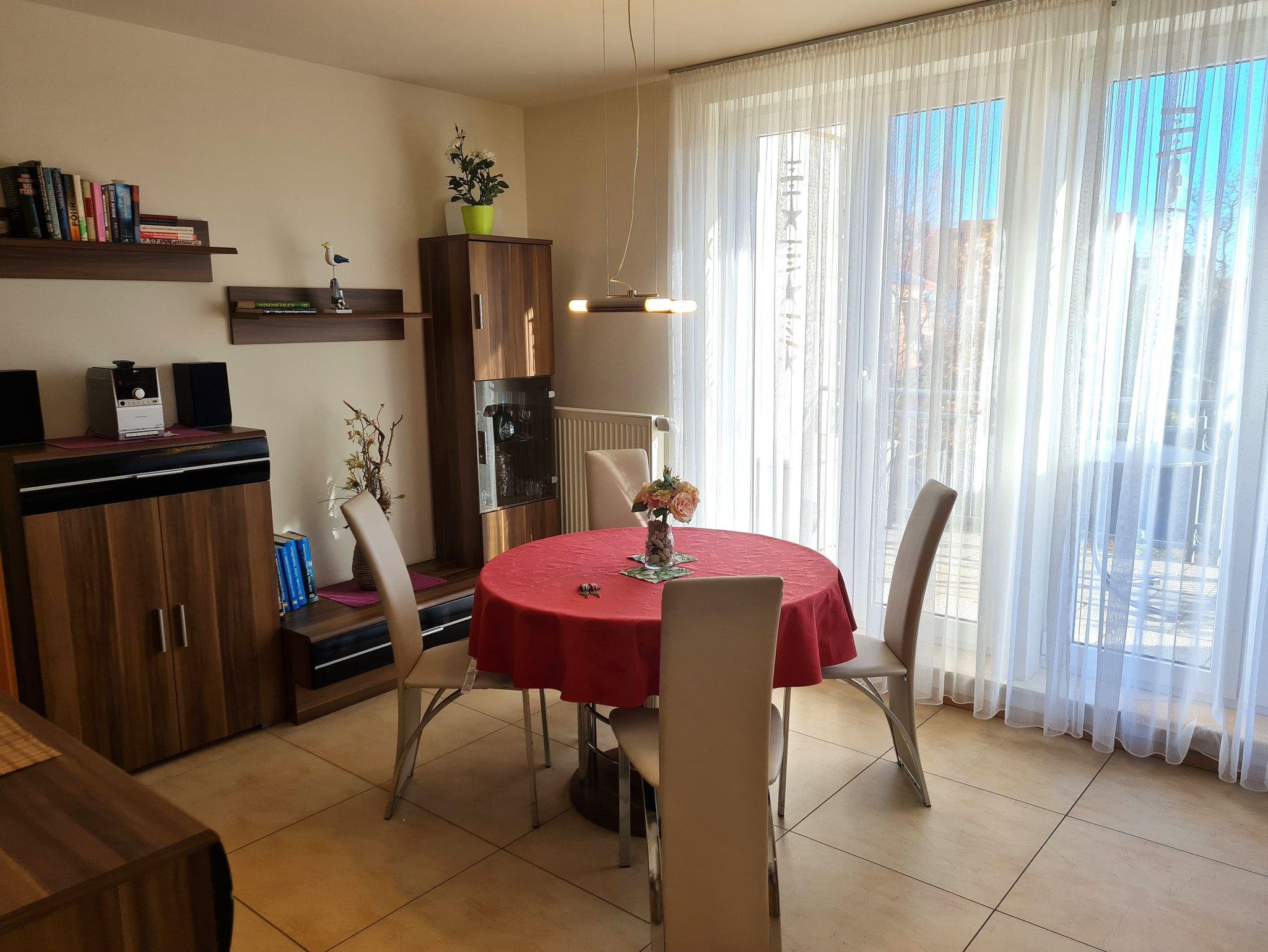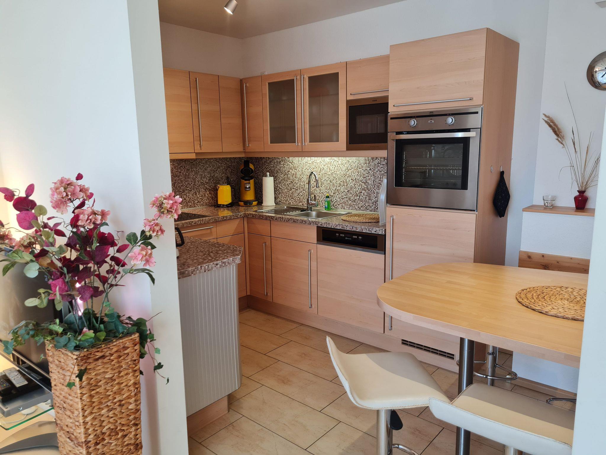 Nur ca. 300 m vom Strand entfernt liegt diese moderne und lichtdurchflutete 3-Raum-Maisonettewohnung mit ca. 70 m² Wohnfläche auf zwei Ebenen. Der nach Osten ausgerichtete Balkon lädt mit hochwertigen Sitzmöbeln zum Frühstück in der Morgensonne ein. Im unteren Bereich befinden sich das gemütliche Wohnzimmer mit integrierter, voll ausgestatteter Küchenzeile sowie ein separates Gäste-WC. Im Obergeschoss bieten zwei separate Schlafzimmer eines mit Doppelbett, eines mit zwei Einzelbetten Platz für bis zu 4 Personen. Das moderne Duschbad verfügt über einen Handtuchheizkörper und einen niedrigen Einstieg. Ein Tiefgaragenstellplatz sowie ein Fahrradraum stehen Ihnen zur Verfügung.