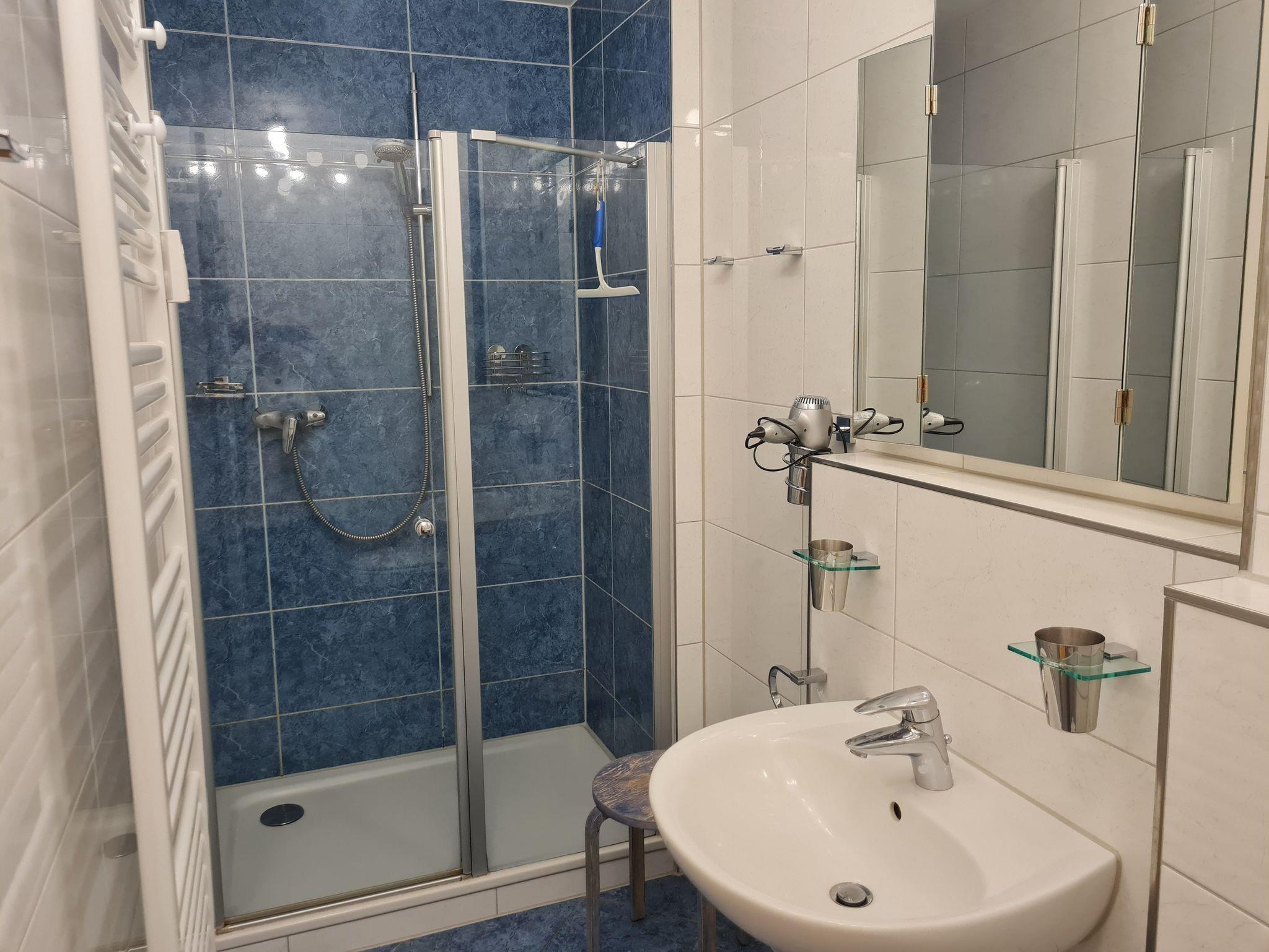 • Großes Badezimmer: im Obergeschoss ein Bad mit Dusche (niedriger Einstieg), WC, Waschbecken, Handtuchheizkörper