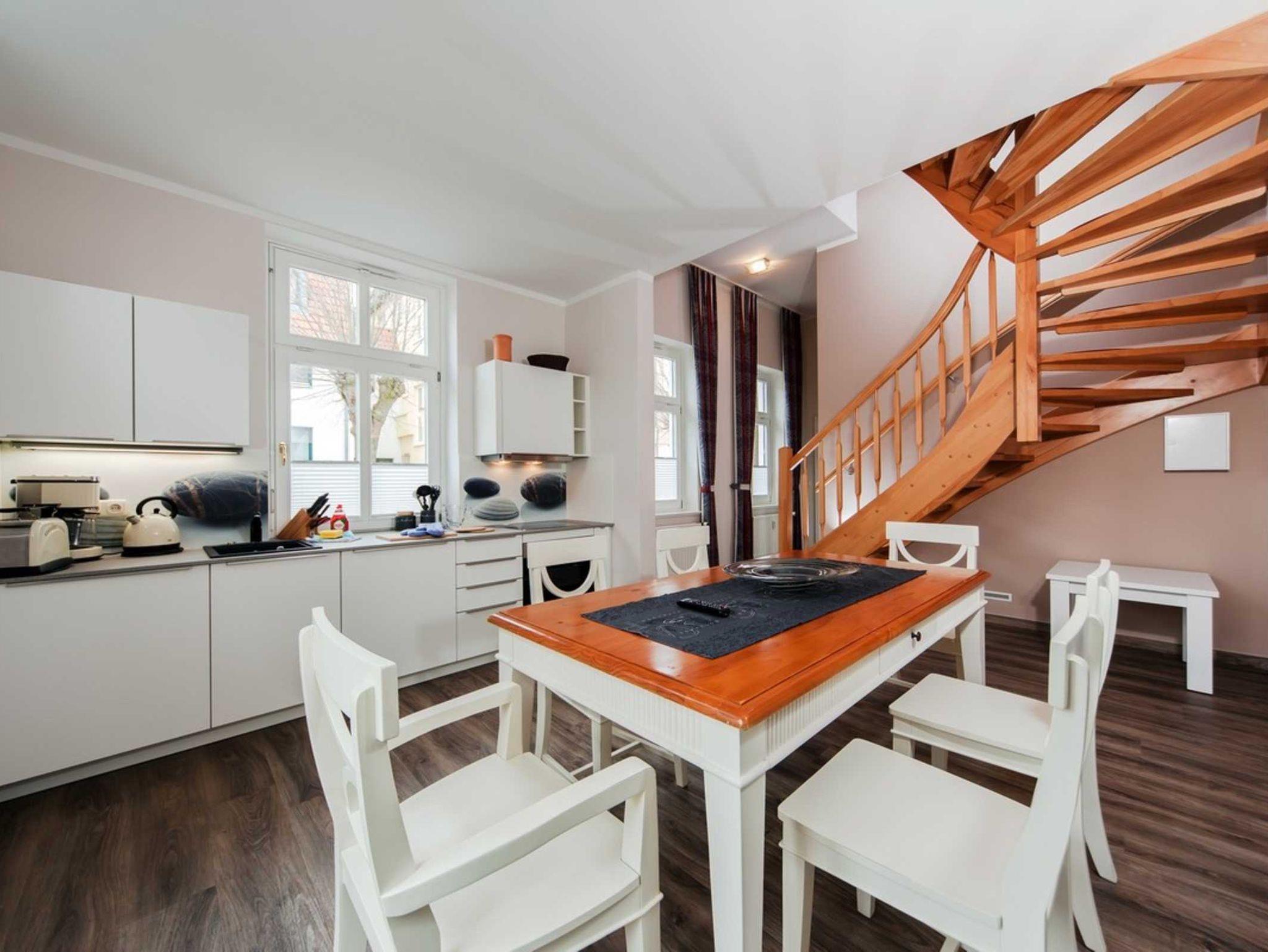 Auf 61 m² über 2 Etagen können hier 4 Personen entspannte Urlaubstage verleben. Über die Südterrasse treten Sie in die Wohnküche mit Esstisch ein. Im unteren Bereich befindet sich ein Schlafzimmer mit Doppelbett und das Badezimmer mit Dusche, WC und Handtuchheizkörper. Über eine Holz-Wendeltreppe gelangen Sie ins Obergeschoss, wo sich ein zweites Schlafzimmer mit Doppelbett und Flachbild-TV befindet. Laue Sommernächte können Sie auf der eigenen Terrasse zur Südseite genießen.