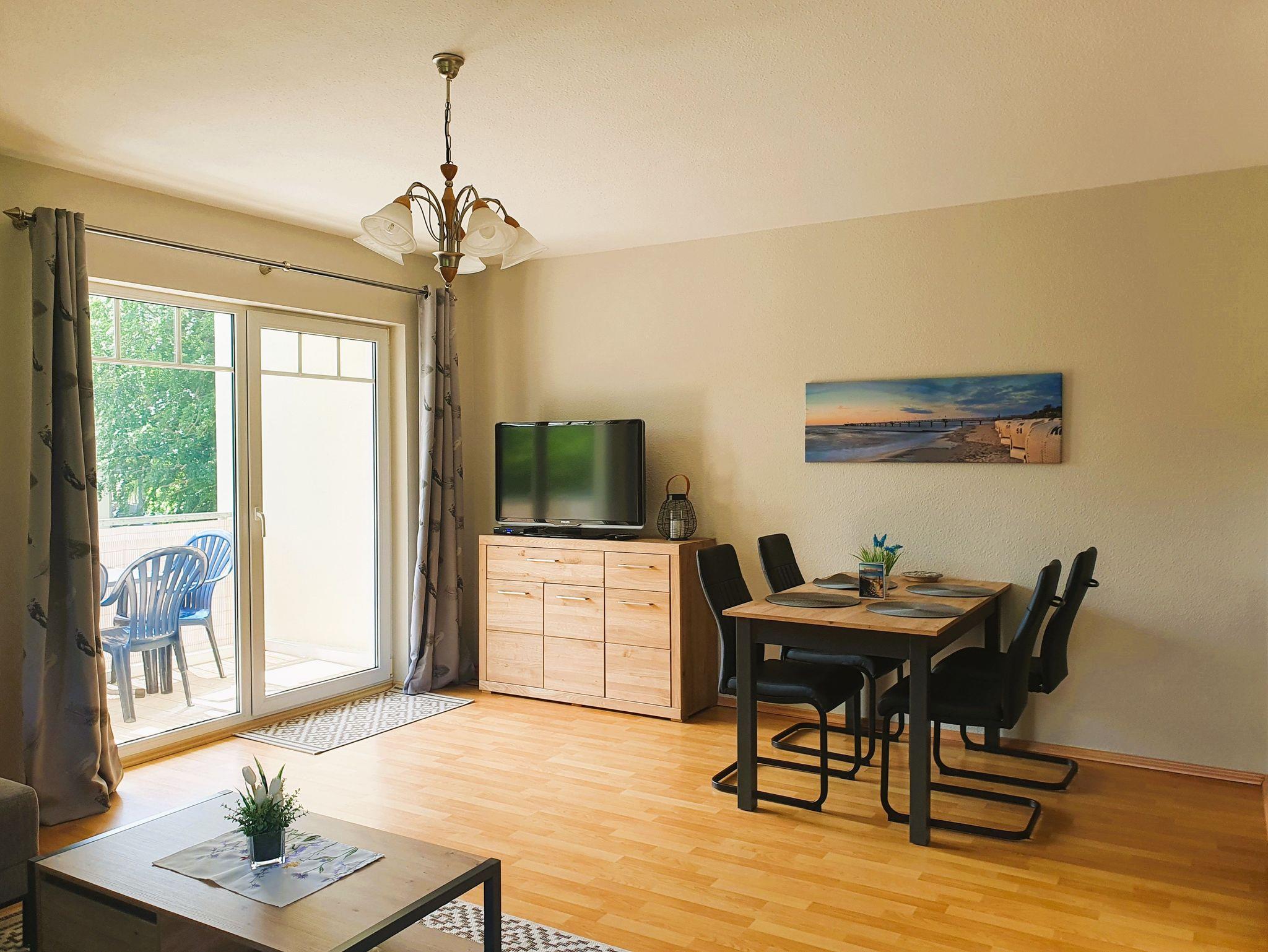 Nur 350m vom Strand entfernt liegt diese gemütlich und modern eingerichtete 3-Raum-Wohnung im 2. OG mit ca. 63 m² Wohnfläche und einem sonnigen Südbalkon. Die sehr familienfreundliche Wohnung kann mit bis zu 4 Personen genutzt werden. Zwei separate Schlafzimmer, bieten Platz für 4 Personen. Praktisch erreichbar befindet sich vor dem Objekt ein abschließbarer Außenabstellraum, der Platz für Fahrräder o.ä. bietet. Der Wohnung ist ein kostenloser Stellplatz Nr. 7 zugeordnet. Ebenso können Sie das kostenlose WLAN nutzen.