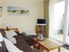 Das gemütliche Wohnzimmer verfügt über eine Couch und einen Flachbild-Fernseher und ein Radio. An der Ess-Ecke mit einer Bank und 2 Stühlen können Sie Ihr Frühstück einnehmen. Vom Wohnzimmer aus gelangen Sie auf die einladende Terrasse, die mit einem Strandkorb, einem Sonnenschirm und Gartenmöbeln ausgestattet ist.