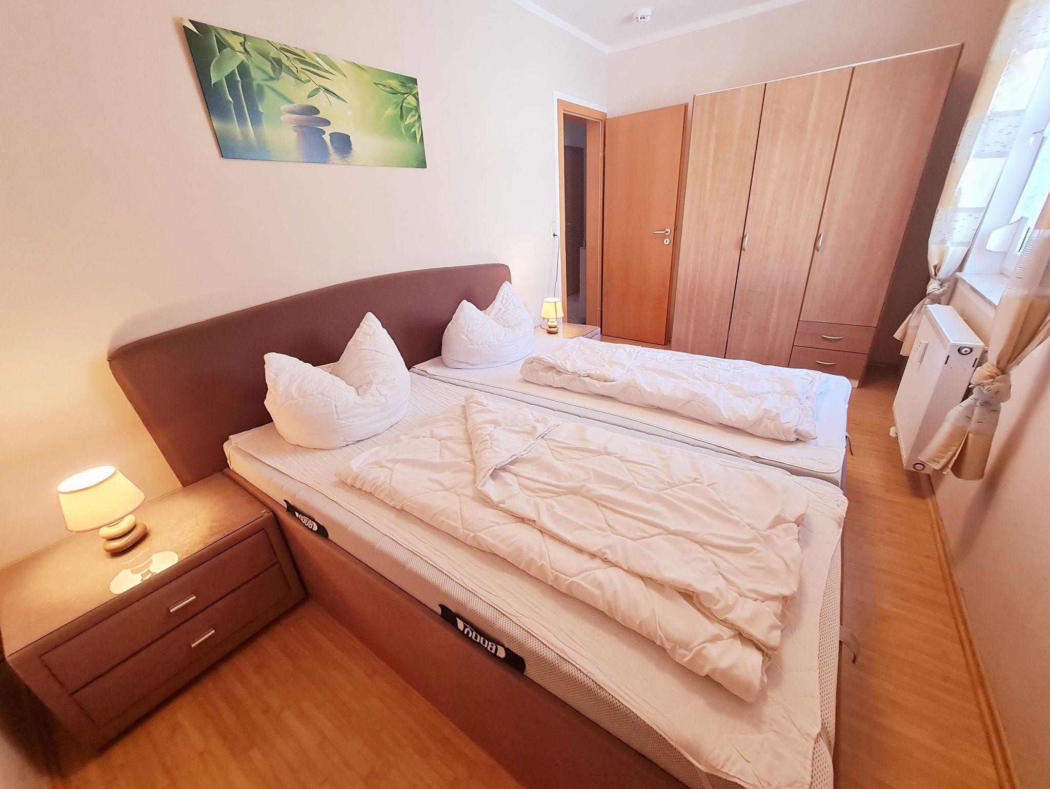 Nur 350m vom Strand entfernt liegt diese gemütlich und modern eingerichtete 3-Raum-Wohnung im Erdgeschoss mit ca. 63 m² Wohnfläche und einer sonnigen Südterrasse. Die sehr familienfreundliche Wohnung kann mit bis zu 4 Personen genutzt werden. Zwei separate Schlafzimmer und eine 1,40x2,00 m große Schlafcouch, bieten Platz für 4 Personen. Praktisch erreichbar befindet sich vor dem Objekt ein abschließbarer Außenabstellraum, der bis zu 4 Fahrrädern Platz o.ä. bietet. Der Wohnung ist ein kostenloser Stellplatz Nr.1 zugeordnet. Eine Waschmaschine steht kostenlos zu Verfügung.
