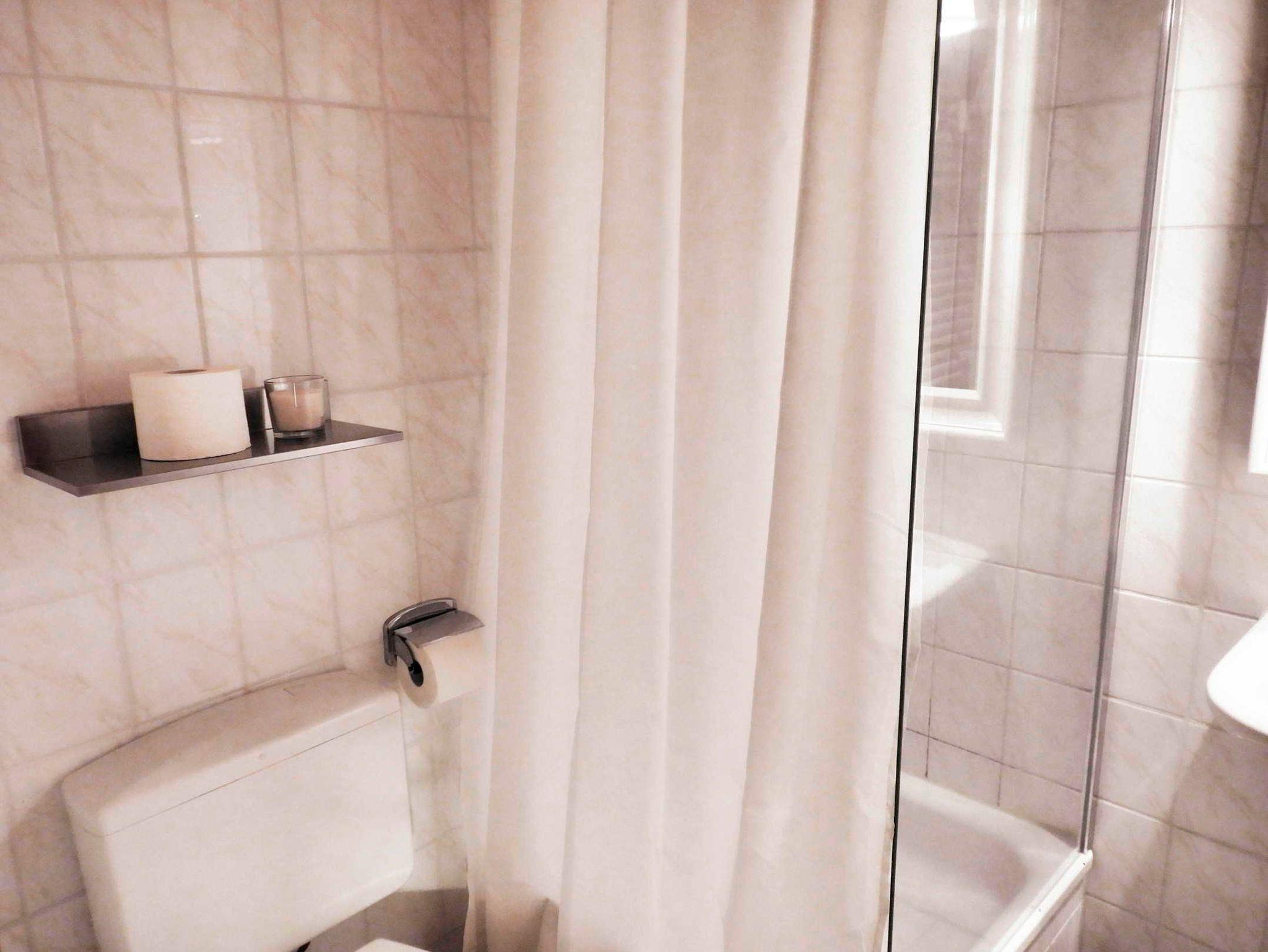 Im eigenen Bad befinden sich Dusche, Waschbecken und WC. Es gibt einen Wäscheständer.