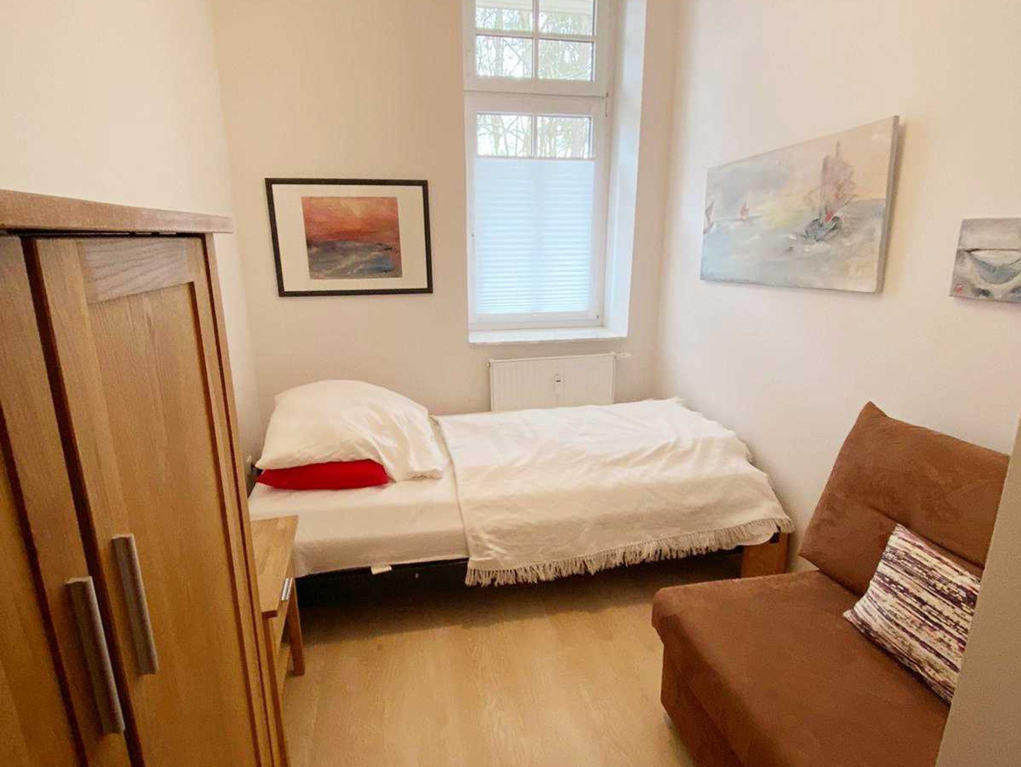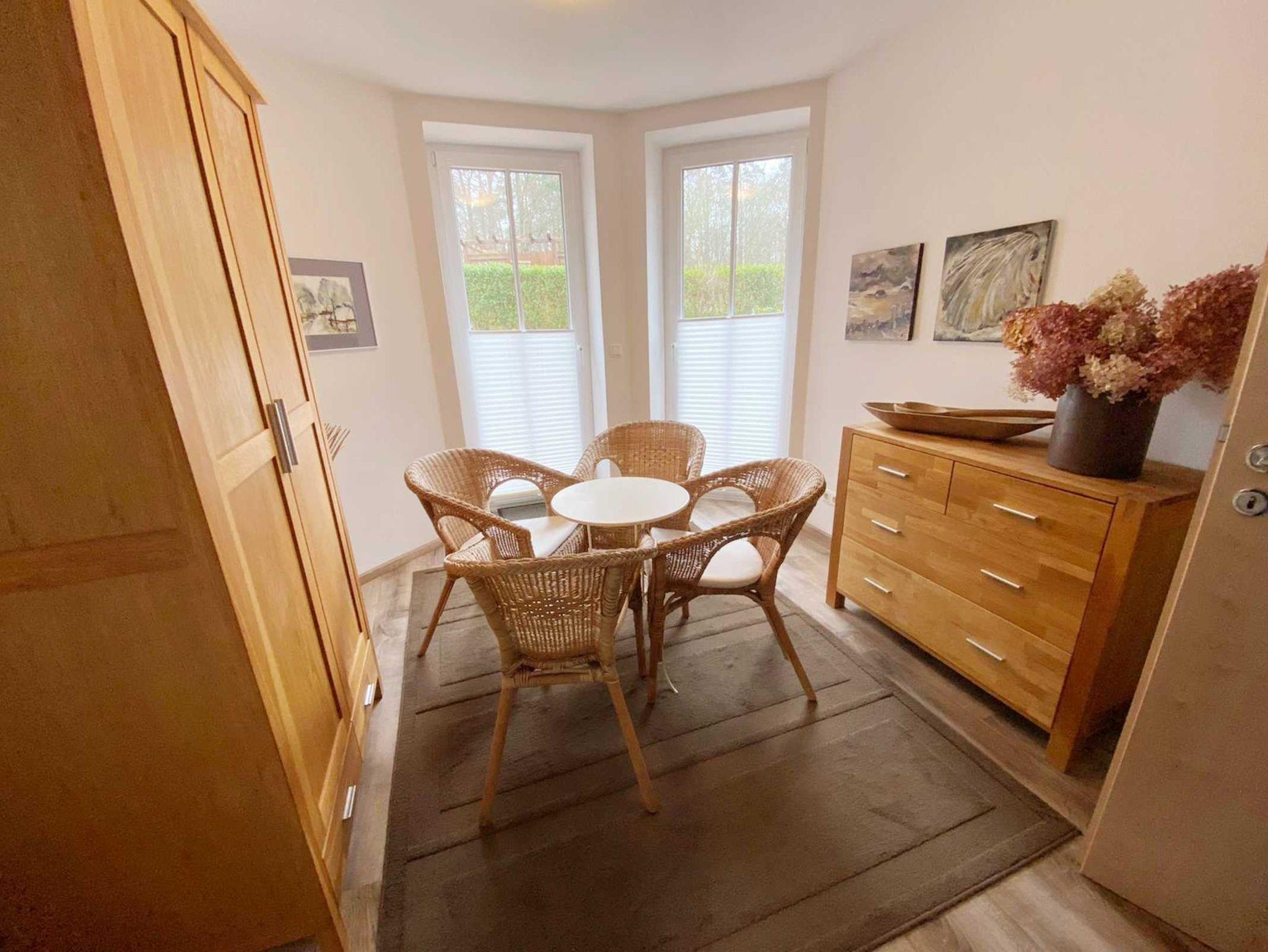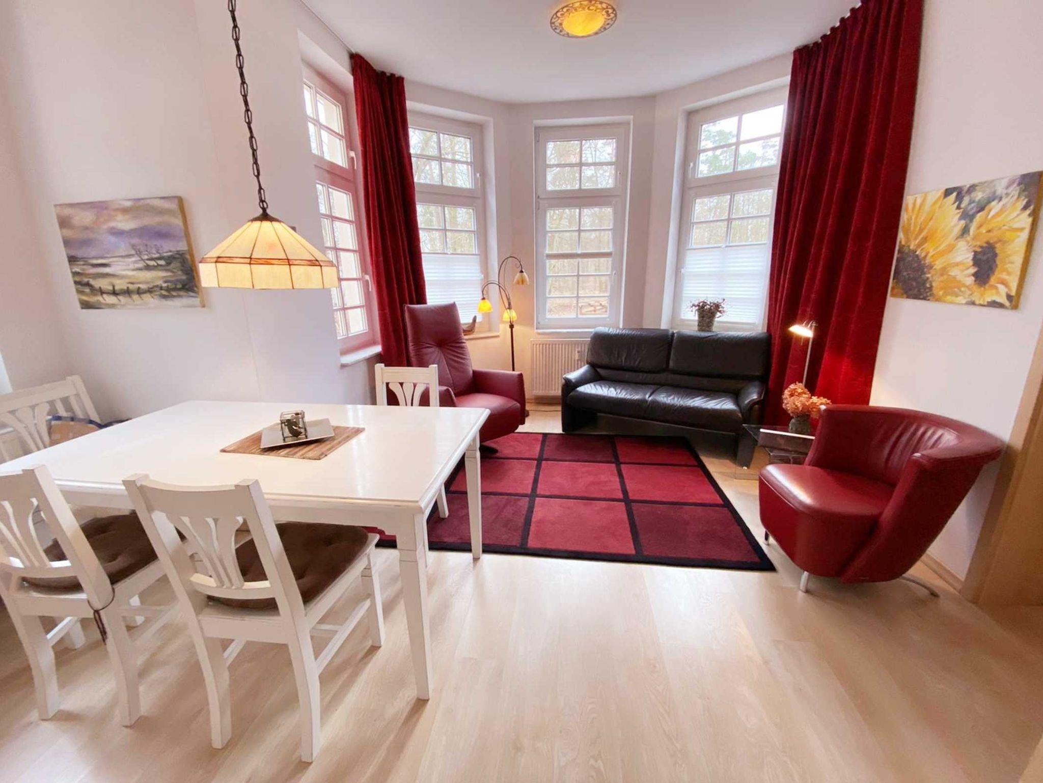 Wald oder Strand? Was ist Ihnen lieber? In unseren Ferienwohnungen im Bucheneck können sie beides genießen. Der Strand wäre von hier aus nur 600m entfernt, den Wald haben sie gleich vor der Nase. Hier liegt diese gemütlich und modern eingerichtete 3-Raum-Maisonetteferienwohnung im 1. Obergeschoss mit ca. 71 m² Wohnfläche und einem sonnigen Südbalkon und einer sonnigen Ostterrasse. Die sehr helle und freundliche Wohnung kann mit bis zu 3 Personen genutzt werden. Zwei separates Schlafzimmer bieten hier Platz dafür. Zwei Badezimmer mit Dusche und Badewanne gehören zum entspannen dazu. Praktisch erreichbar befindet sich in dem Objekt ein Fahrradkeller und ein Trockner. Der Wohnung ist ein kostenloser Stellplatz Nr. 20 vor der Tür zugeordnet.