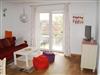 Ihre helle Ferienwohnung verfügt über ein Wohn- und ein Schlafzimmer. Im Wohnbereich befindet sich eine Schlafcouch sowie ein Fernseher.