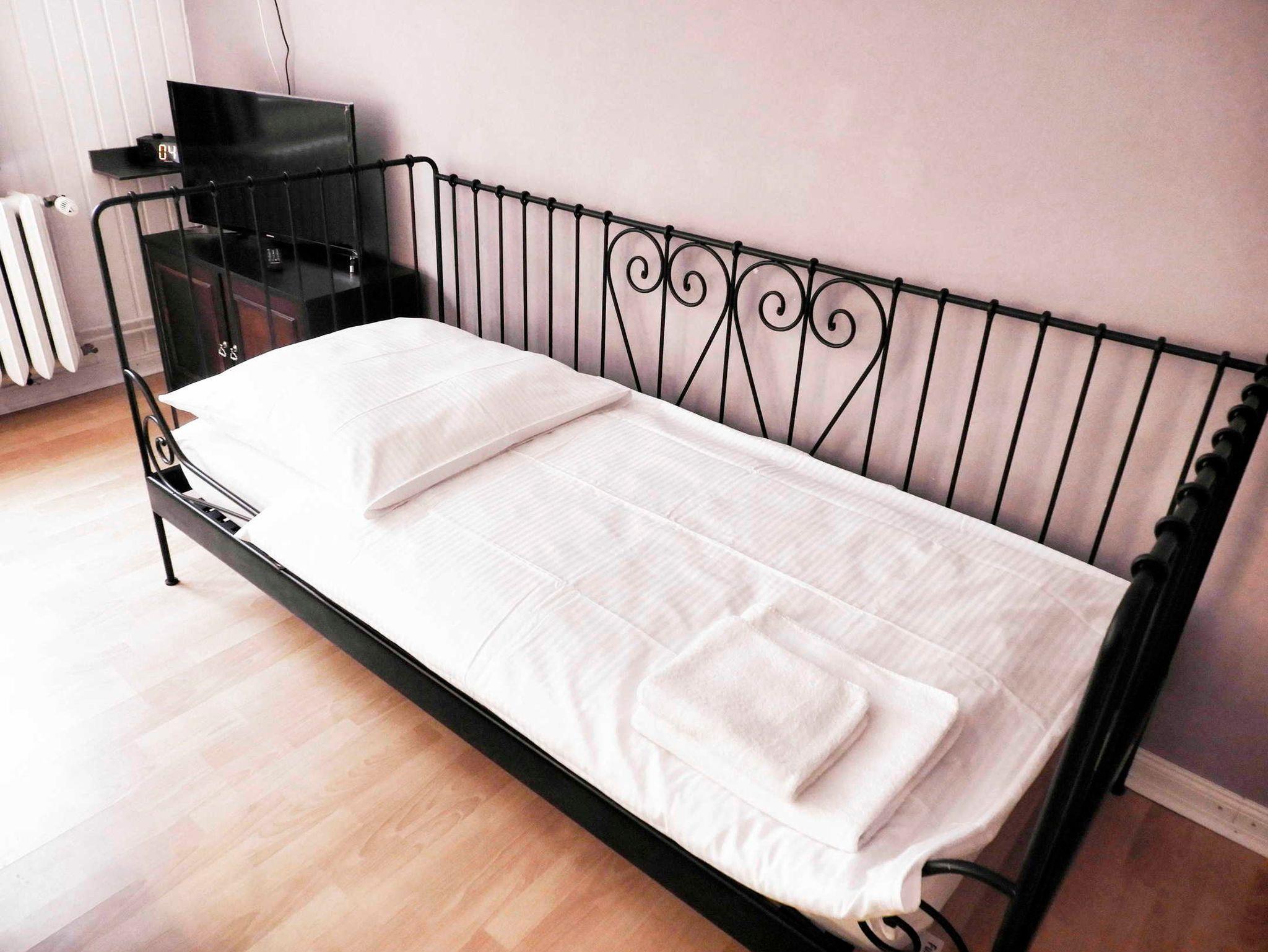 Im eigenen Bad befinden sich Dusche, Waschbecken und WC. Es gibt einen Wäscheständer.