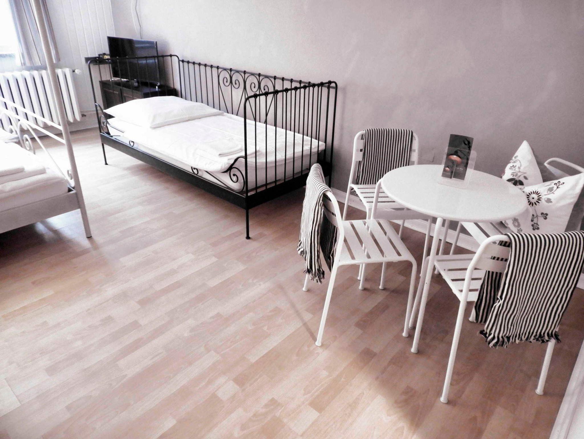 Das Ferienzimmer Dünenhexe in Graal-Müritz bietet Ihnen ein Doppelbett und 2 Einzelbetten, ein LCD-TV mit Satellitenempfang sowie zwei Schränke und einen Tisch mit vier Stühlen.