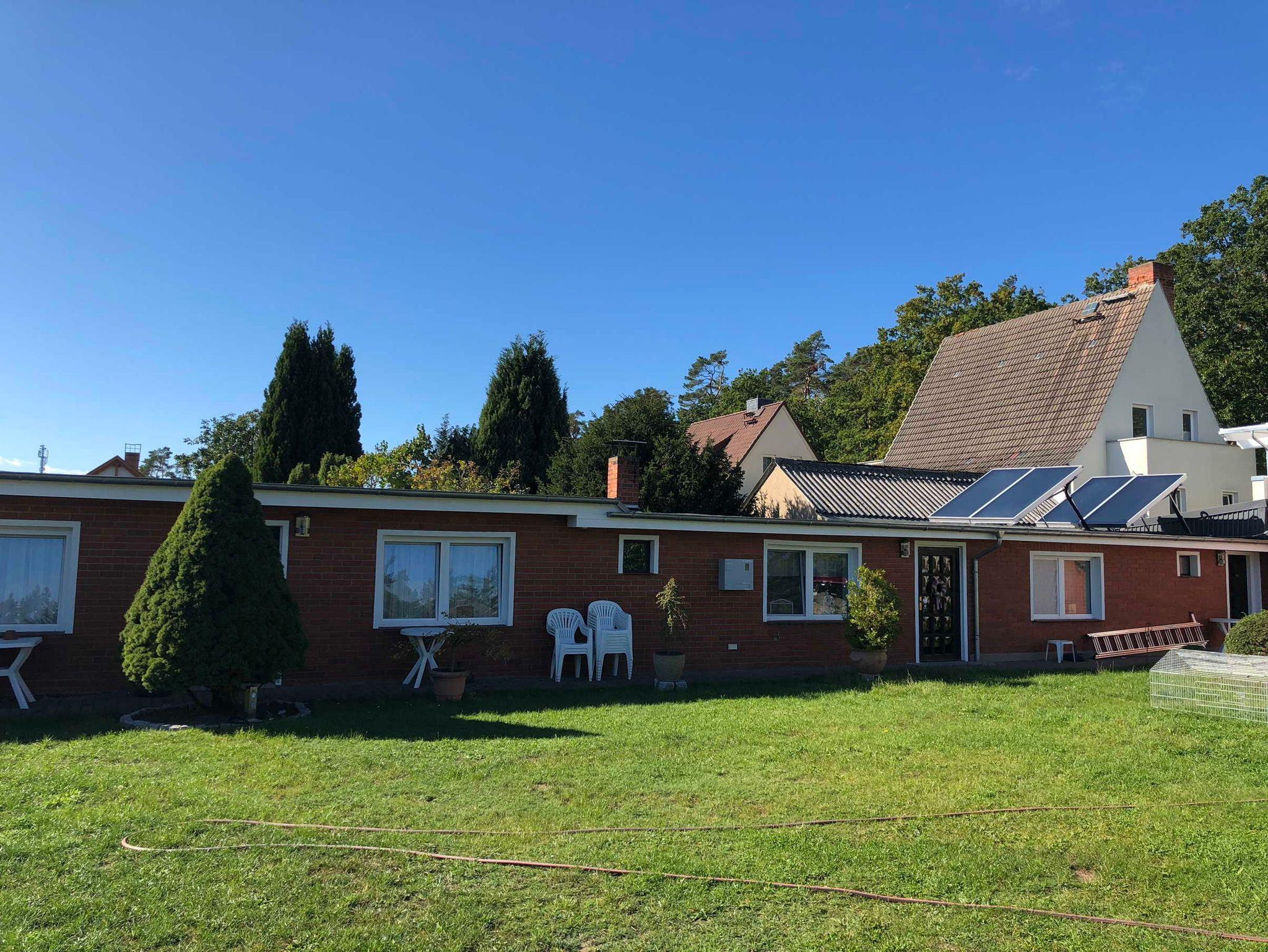 Die Ferienzimmer liegen in einem kleinen Ferienhof. Vor den Ferienzimmern gibt es eine Grünfläche. Der Ferienhof befindet sich an der Rostocker Straße und grenzt an eine Kleingartenanlage. Gegenüber des kleinen Ferienhofes liegt das Rehazentrum.