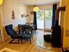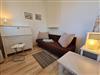 • Wohnzimmer: gemütliche Schlafcouch mit 130x200 cm, Flachbild-TV, TV-Bank, Tisch, direkter Zugang zum Westbalkon, Kaminofen, Plissees und Verdunklungsvorhänge