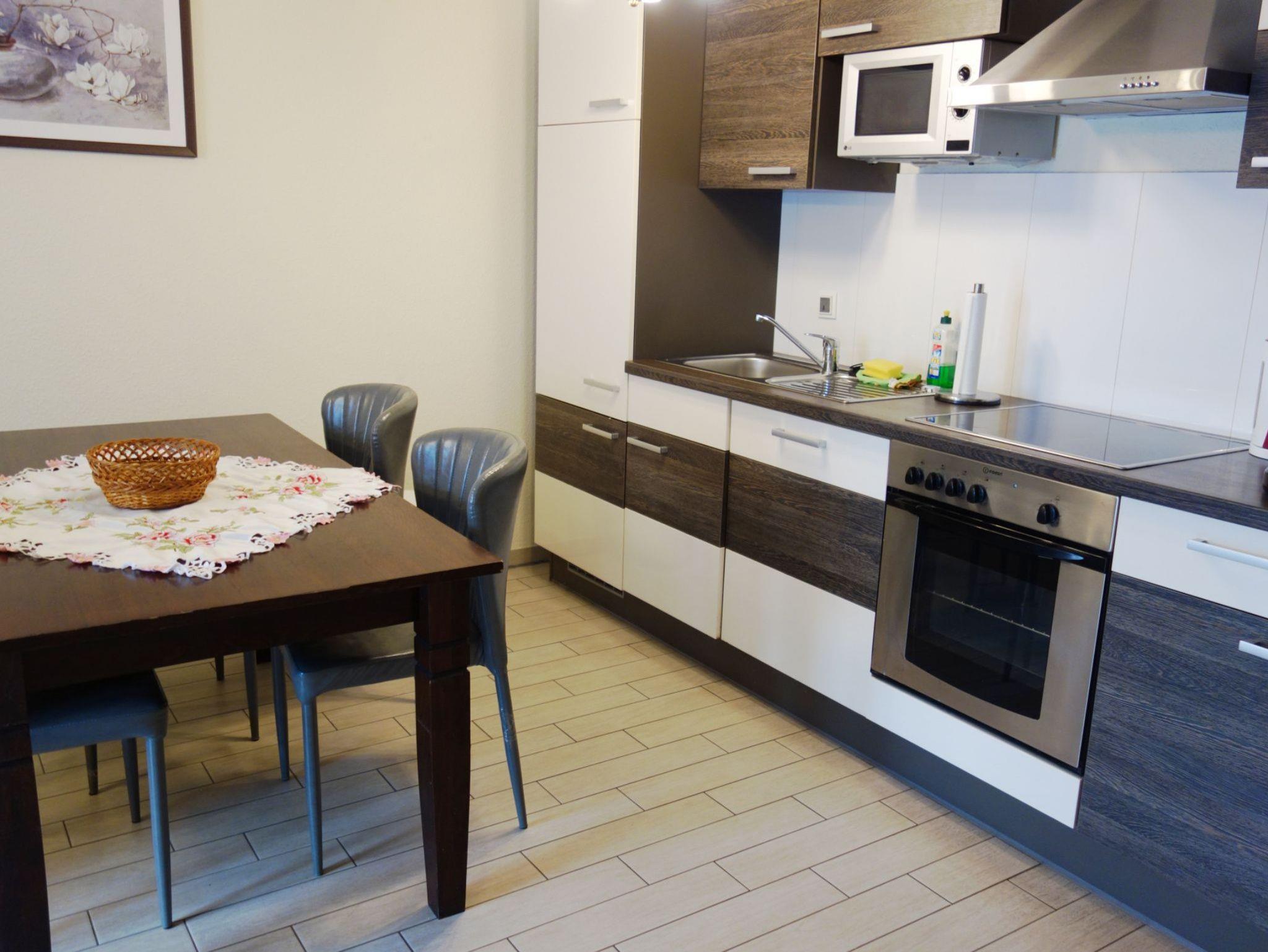Im integrierten Küchenbereich befinden sich unter anderem ein Herd mit 4 Ceranfeld-Kochplatten, ein Geschirrspüler, ein Kühlschrank, eine Mikrowelle, ein Ofen, eine Kaffeemaschine und ein Wasserkocher.