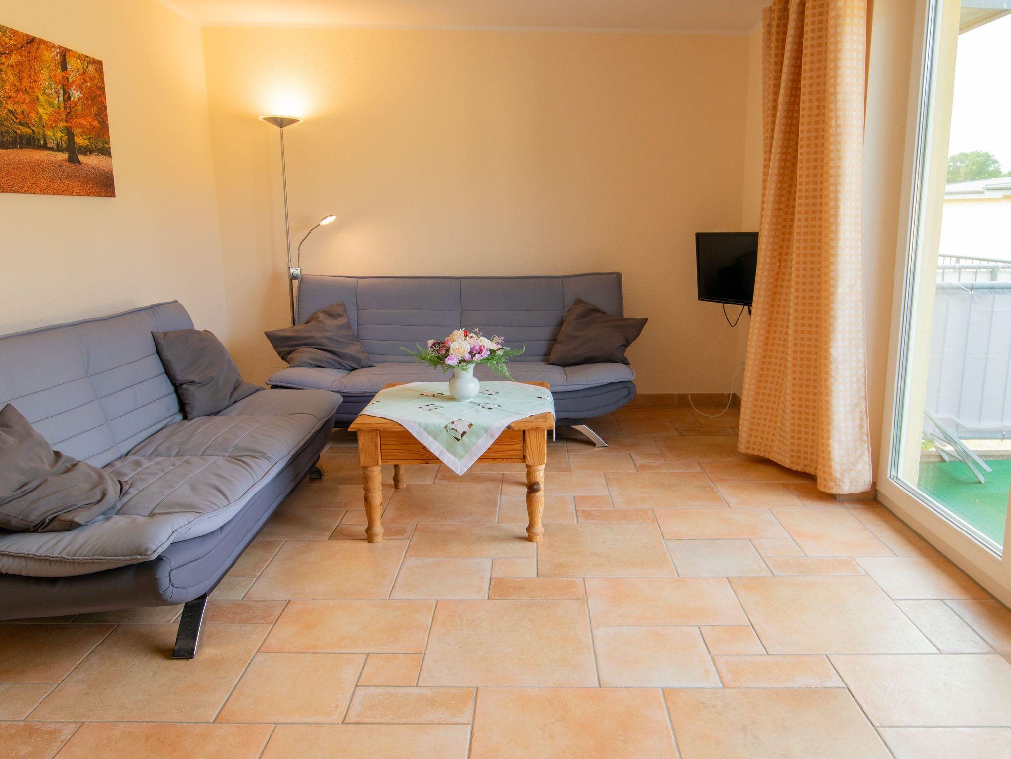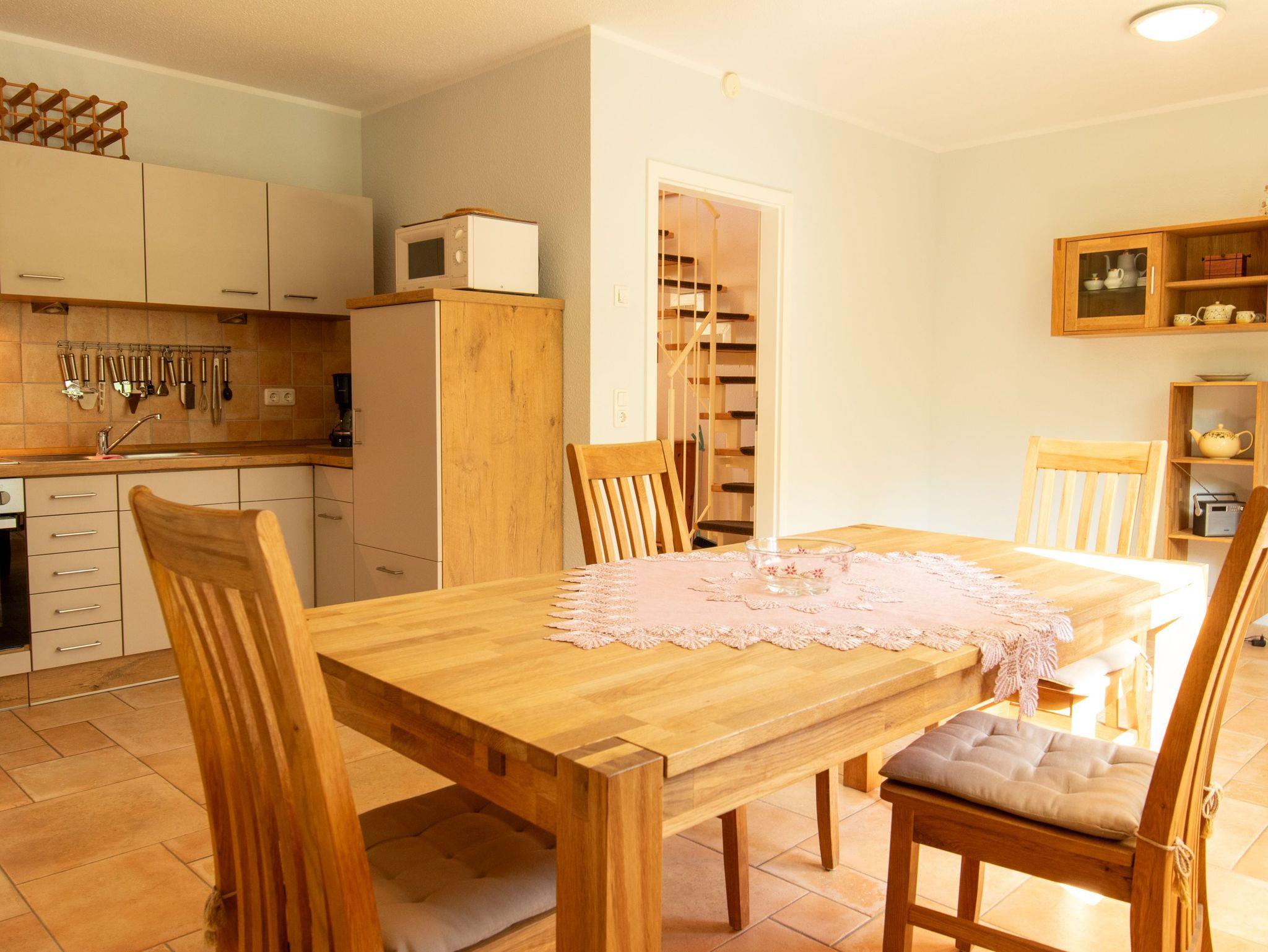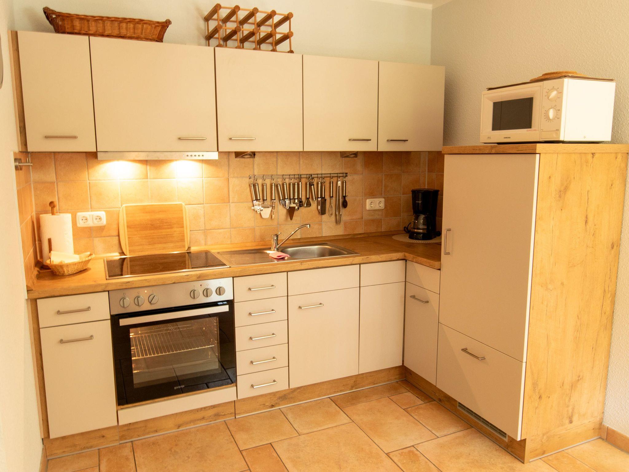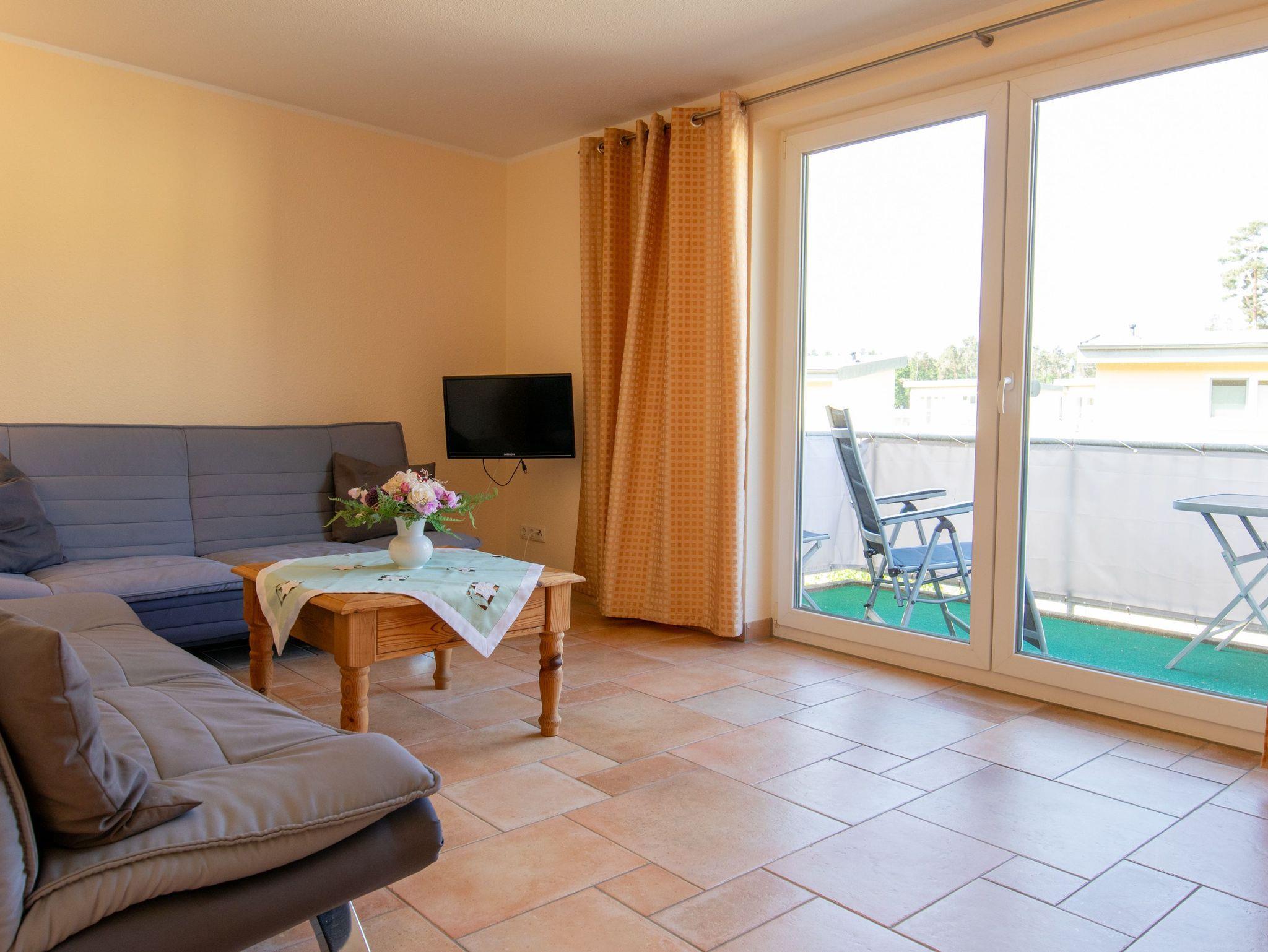 Die Ferienwohnung Kienappel im ruhigen Feriendorf Küstenwald befindet sich im Ostseeheilbad Graal-Müritz. Die für 2 Personen geeignete Ferienwohnung erstreckt sich über zwei Etagen und verfügt über ein Schlafzimmer und ein Wohnzimmer im Dachgeschoss, sowie eine voll ausgestattete Küche und ein Bad mit Dusche und Bidet im Obergeschoss. Das Schlafzimmer ist mit einem Doppelbett (180x200) und einem Kleiderschrank ausgestattet und hat einen kleinen Balkon. Im Wohnzimmer befinden sich 2 Schlafsofas, ein TV und der Zugang zu einem weiteren Balkon. Die Küche besticht mit viel Stauraum, Herd, Backofen, Kühlschrank, Mikrowelle und einem Esstisch. Das Badezimmer ist mit einer Dusche, Bidet und einem WC ausgestattet.