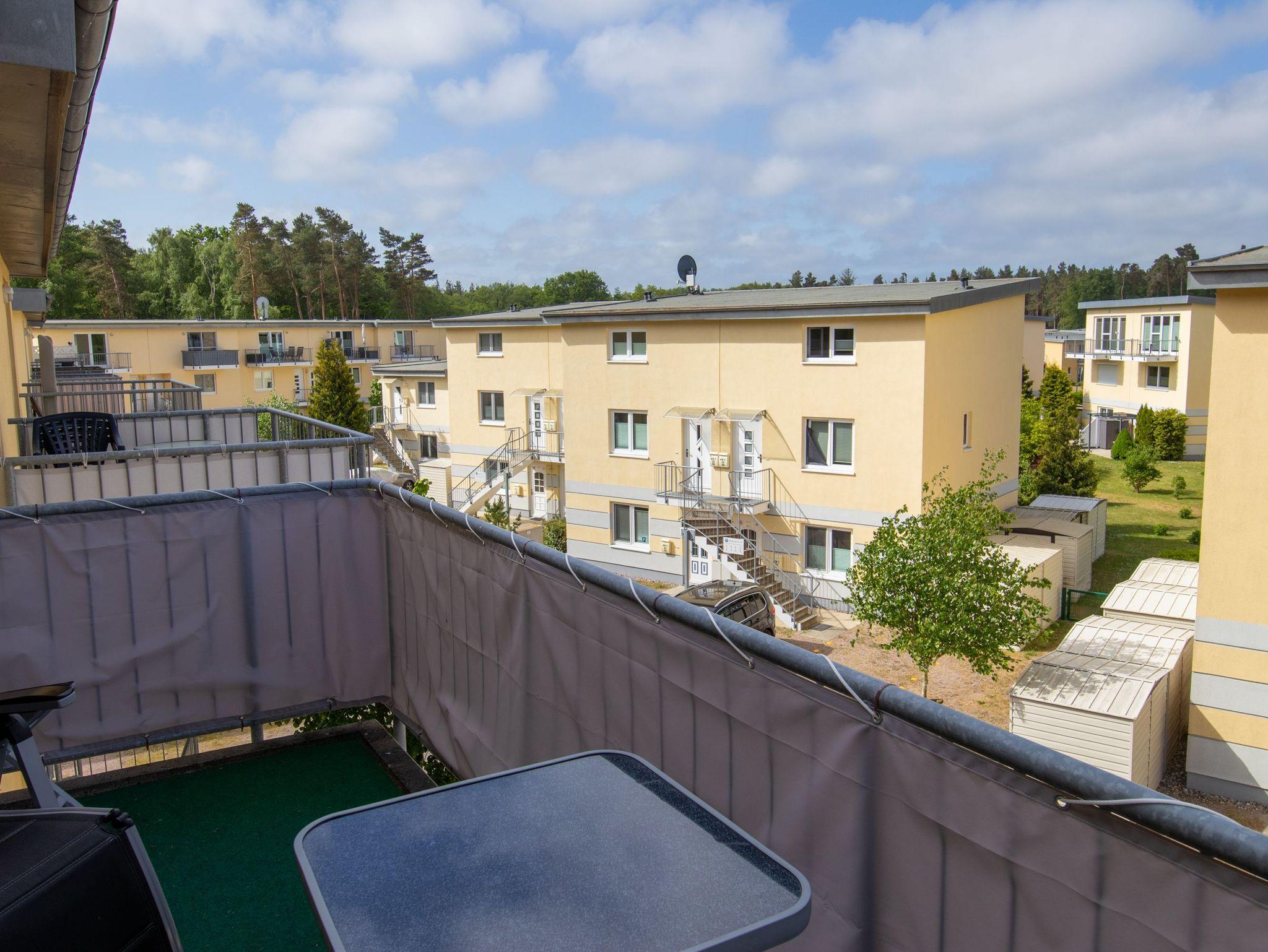 Die Ferienwohnung Kienappel im Feriendorf Küstenwald befindet sich im Ostseeheilbad Graal-Müritz. Abseits des Massentourismus genießen hier bis zu 2 Personen einen entspannten Urlaub an der Ostsee. Die Ferienwohnung erstreckt sich über zwei Etagen und verfügt über ein Schlafzimmer und ein Wohnzimmer im Dachgeschoss, sowie eine voll ausgestattete Küche und ein Bad mit Dusche und Bidet im Obergeschoss. Die beiden Balkone mit Ost und West-Ausrichtung ermöglichen ihnen die Sonne am Morgen und am Abend auszunutzen. Zur Ferienwohnung gehört ein abschließbarer Schuppen für Fahrräder und ein PKW-Stellplatz.
