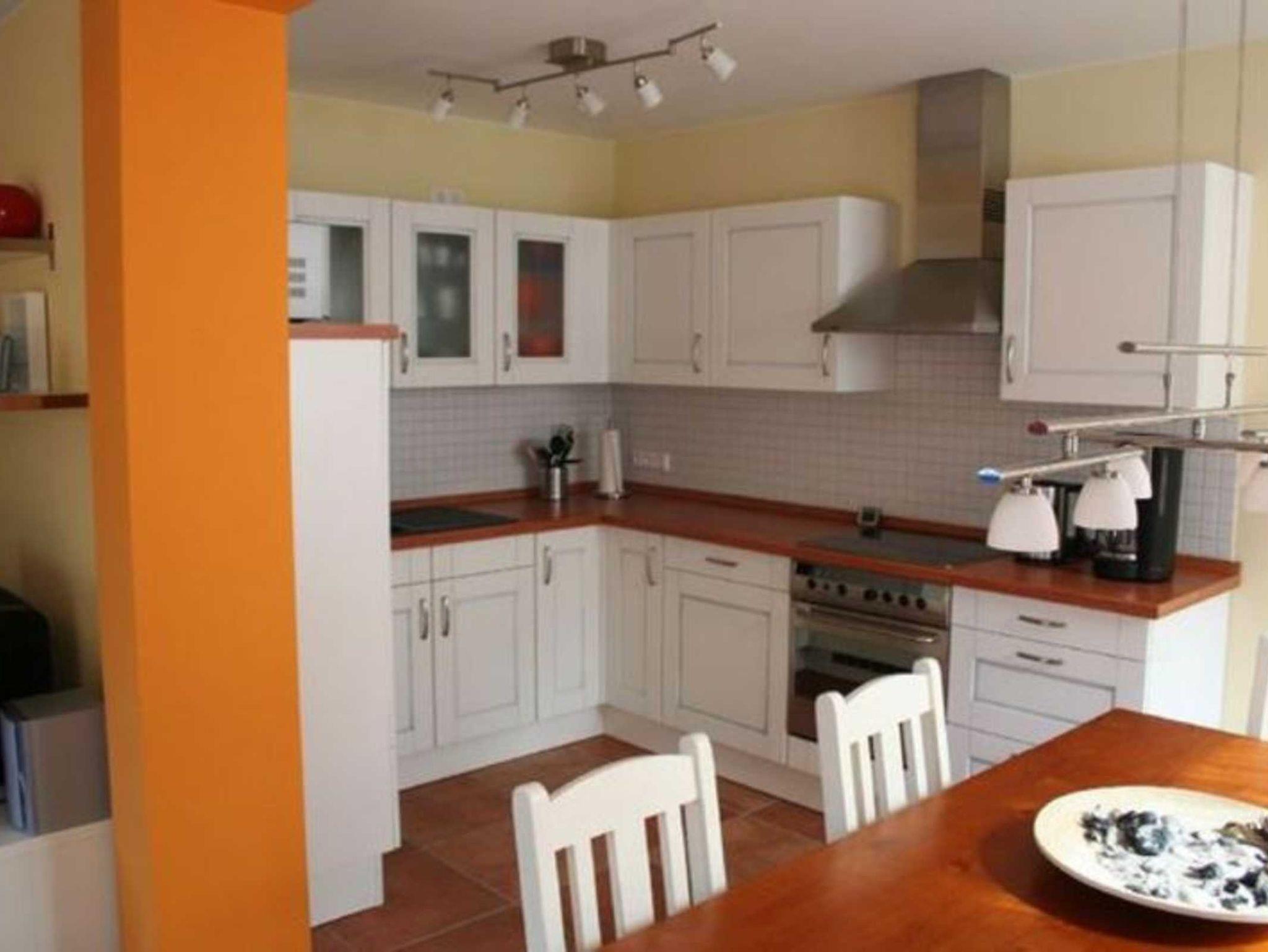 • Küche mit Geschirrspüler, Mikrowelle, Kühlschrank mit Gefrierfach, E-Herd, Toaster, Kaffeemaschine, Eierkocher und auch Backformen
