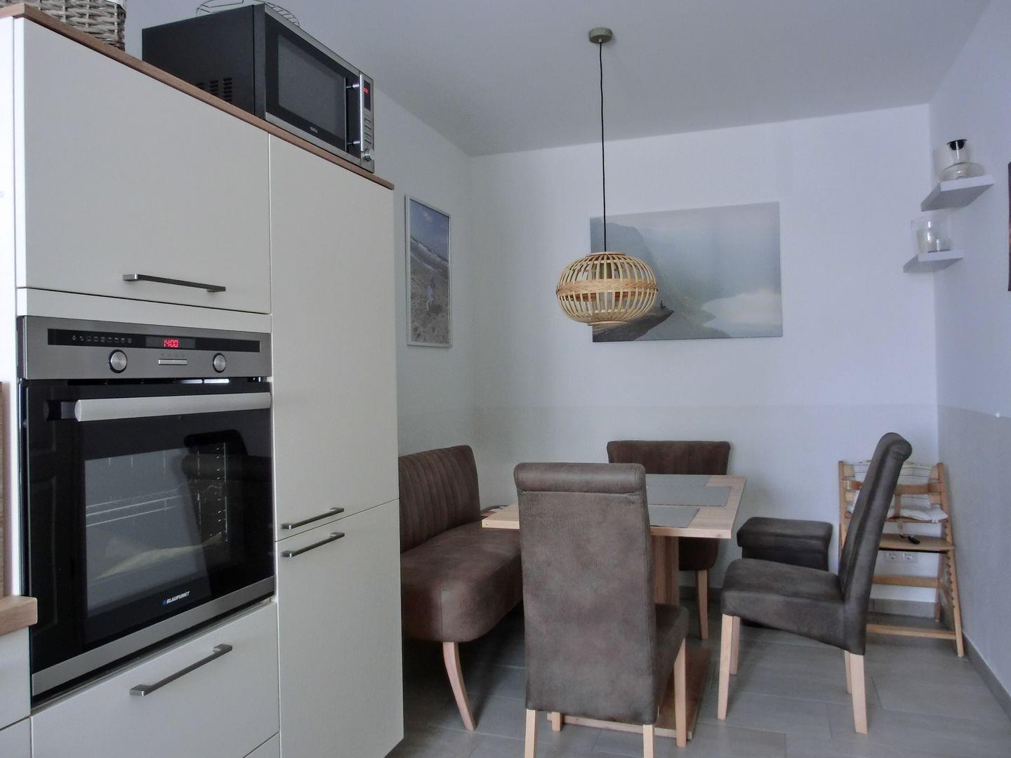 - Die separate Küche ist mit Geschirrspüler, Herd, Backofen, Mikrowelle, Kühlschrank mit Gefrierteil, Kaffeemaschine, Toaster und Wasserkocher ausgestattet.