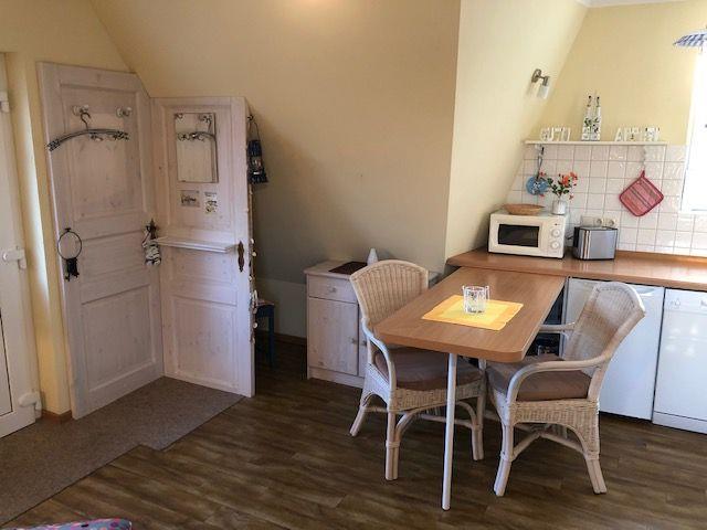 Moderne und mit viel Liebe zum Detail eingerichtete Ferienwohnung mit ca. 38 m² Wohnfläche, für 2 Personen im 1. OG. Eigener Zugang. Wohnzimmer mit Küchenzeile, Spülmaschine und Mikrowelle. W-LAN inklusive .Kleines Schlafzimmer, geräumige Du/WC. Bettwäsche ab 10 Tage inklusive.
