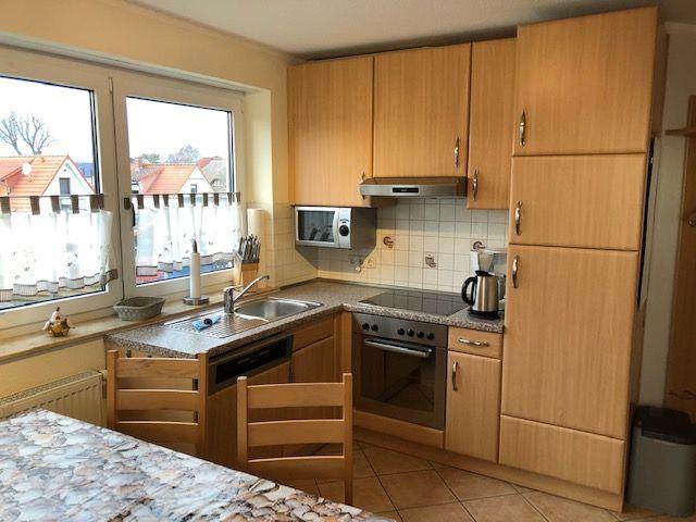 Ferienwohnung in einem Doppelhaus,1.Stock, ca.70qm, Strand 800m, 1 Pkw-Stell- Platz, zentrale aber ruhige Lage, Wohnzimmer mit Küchenzeile (Geschirrspüler), Sat-TV, DVD-Player, Balkon, Kinderzimmer mit Einzelbetten und TV, Kinderreisebett, Dusche/WC, OG. Schlafzimmer mit Ehebett, Kinderstuhl, Grillplatz mit Terrasse und Gartenmöbel, überdachter Fahrradständer, Südbalkon, mit gem. Gartennutzung