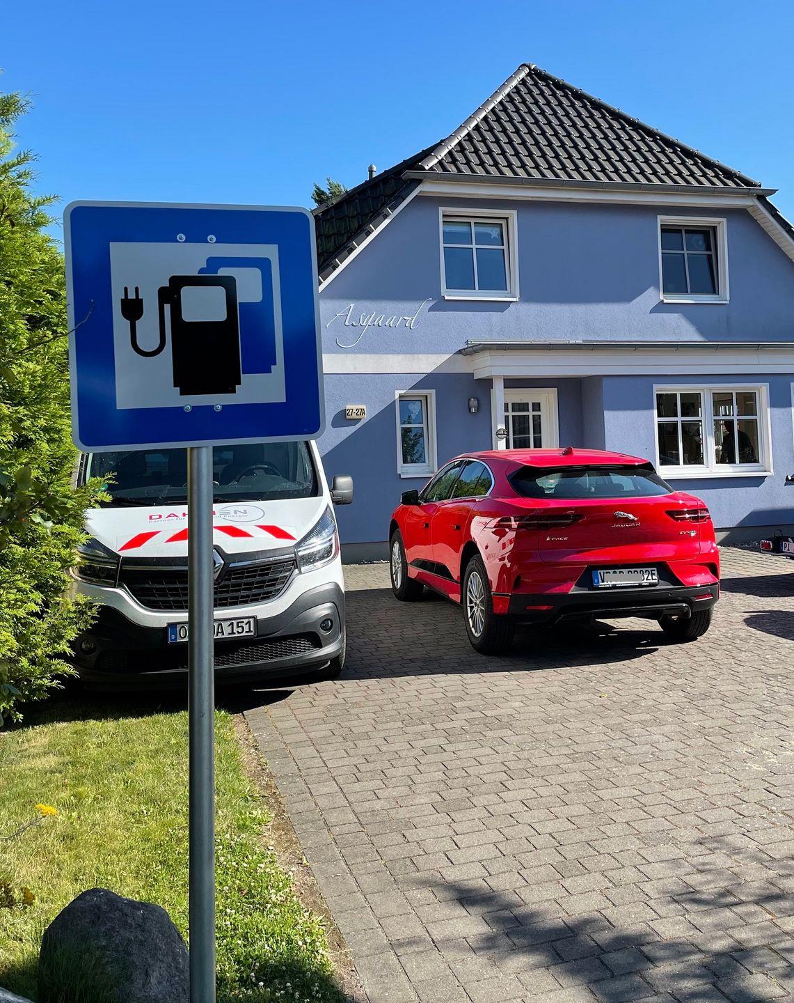 es ist eine kostenpflichtige e-Ladesäule im Bereich der Parkplätze vorhanden