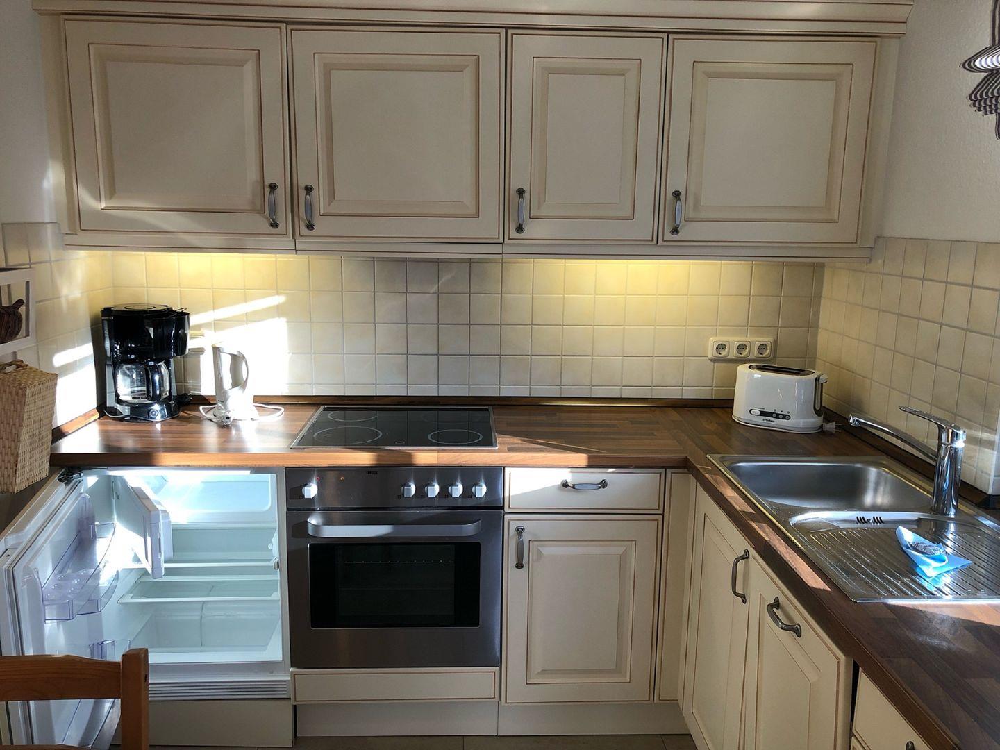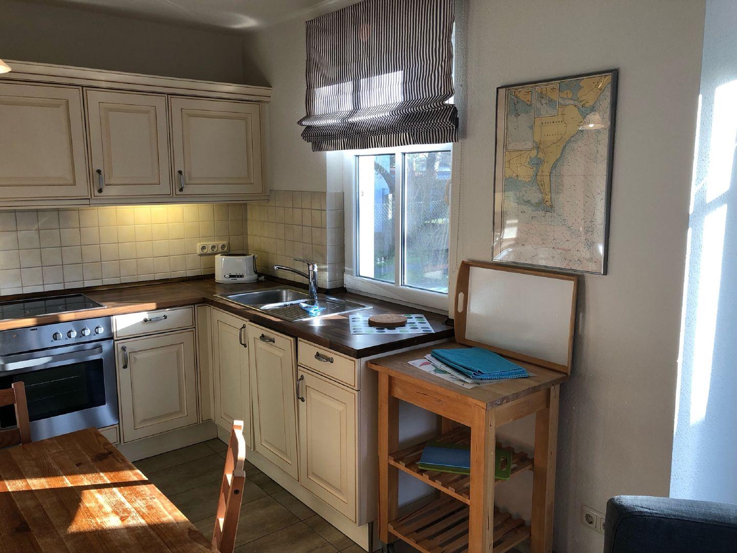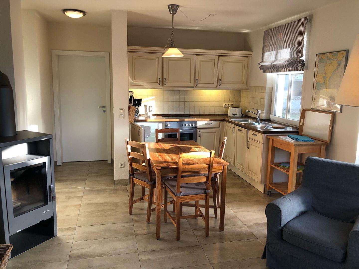 2 Schlafzimmer, Wohnzimmer mit kompletter Küchenzeile, Kaminofen, Dusche / WC , Terrasse mit Gartenmöbel, bis zum Strand sind es ca. 800m. ein