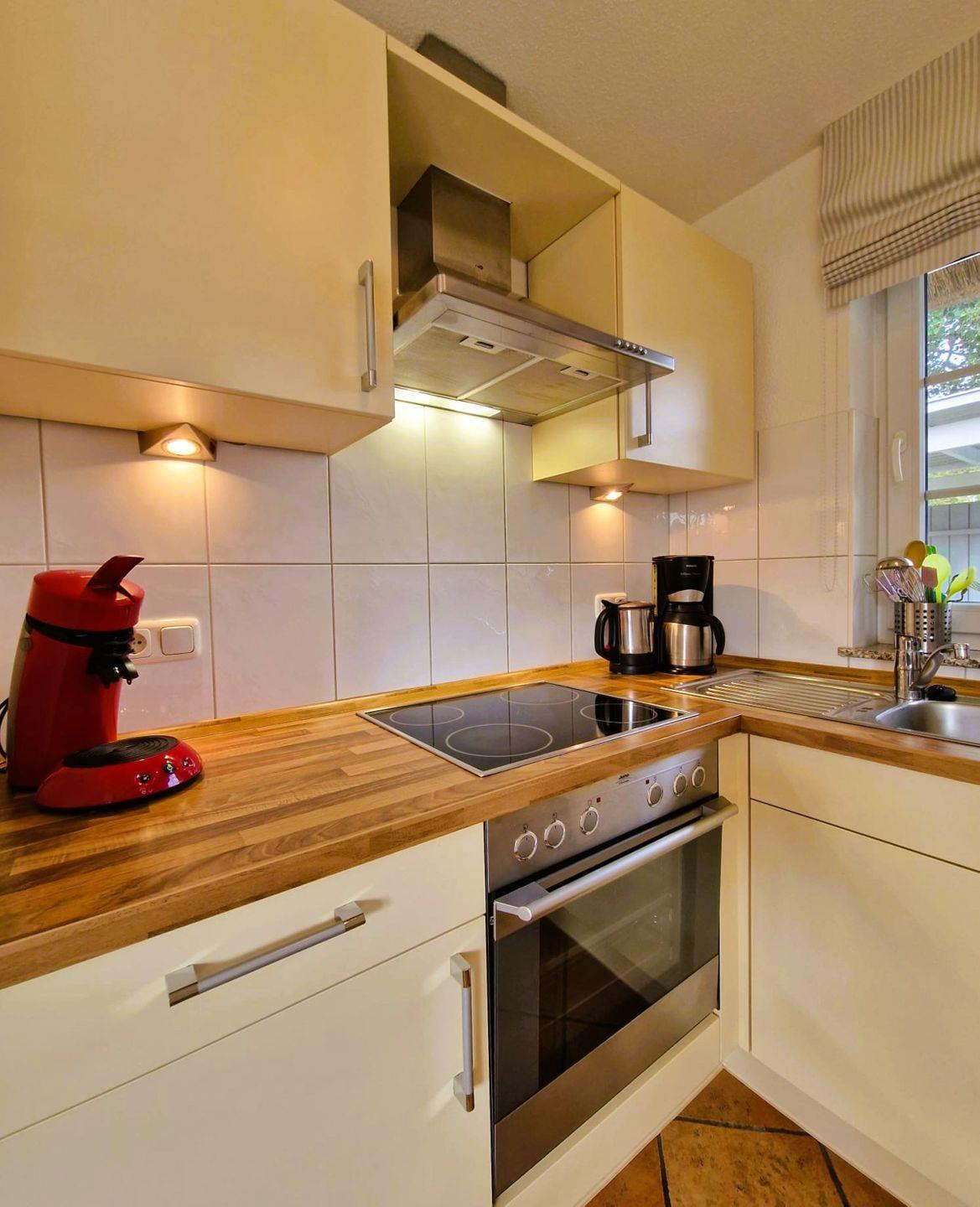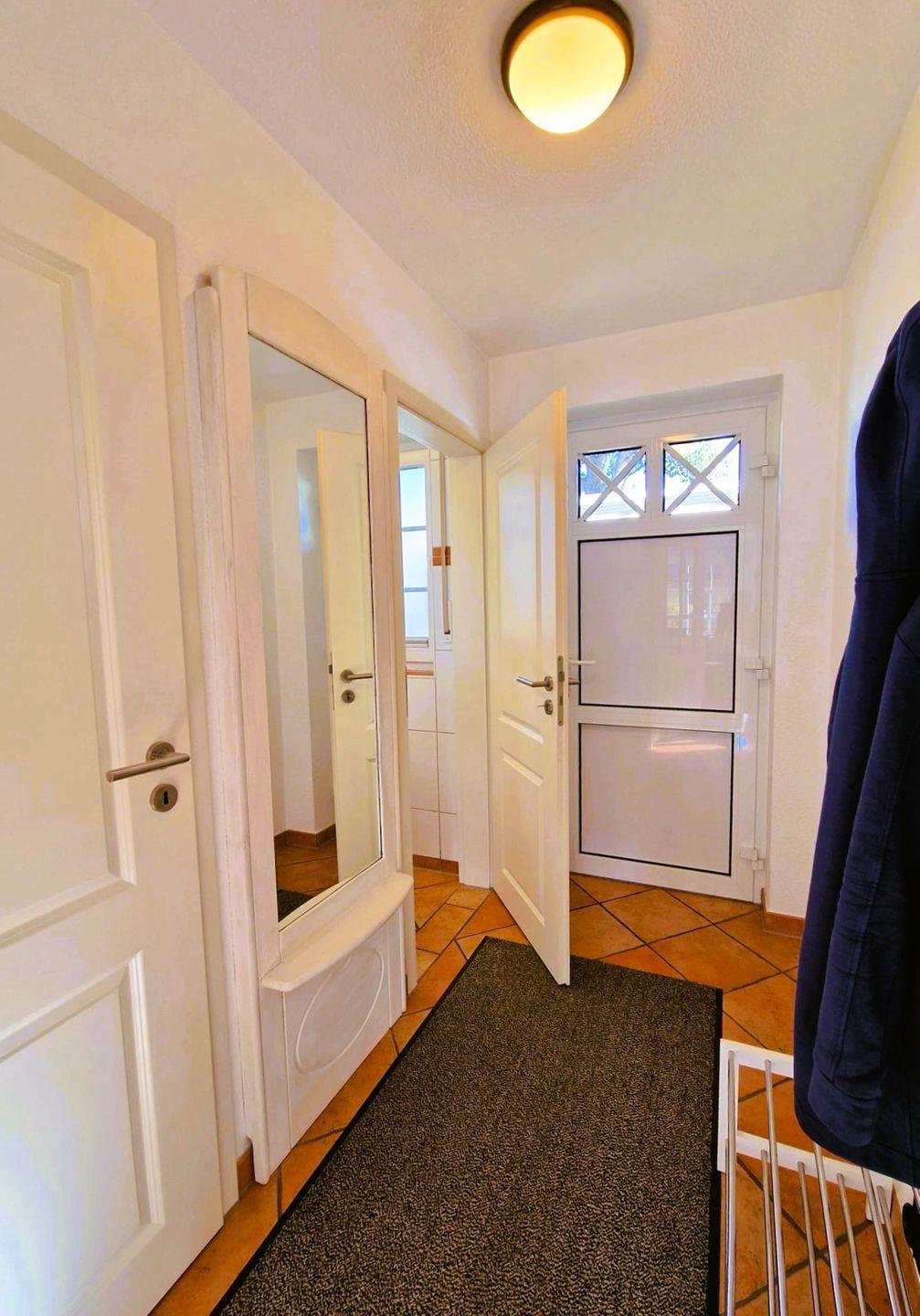 Die sehr schöne, ruhig gelegene, mit Schilf gedeckte Doppelhaushälfte am Ende einer Sackgasse, in einem Ensemble von mehreren Häusern dieser Art im Mine-Heimat-Weg wurde 2007 erbaut und ist sehr gut eingerichtet.