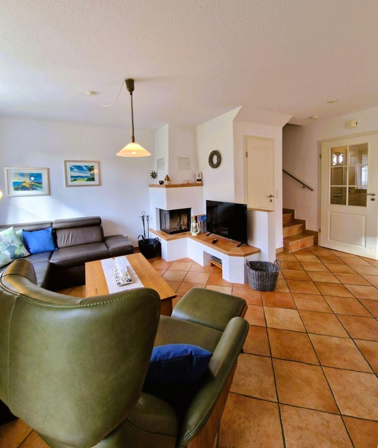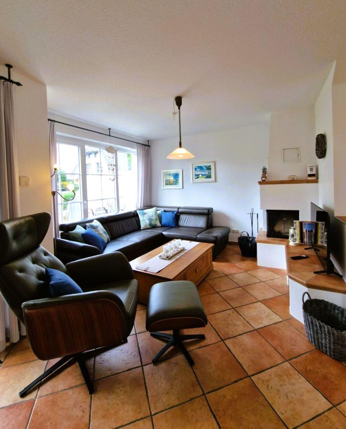 Auch bei nicht so tollem Wetter ist durch den Kamin und die Fußbodenheizung eine gemütliche Atmosphäre gegeben.
