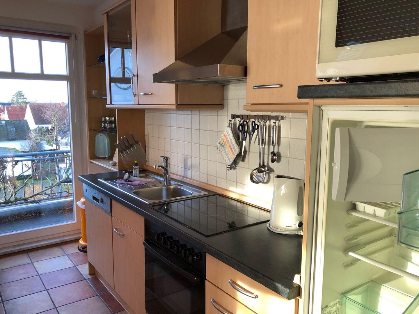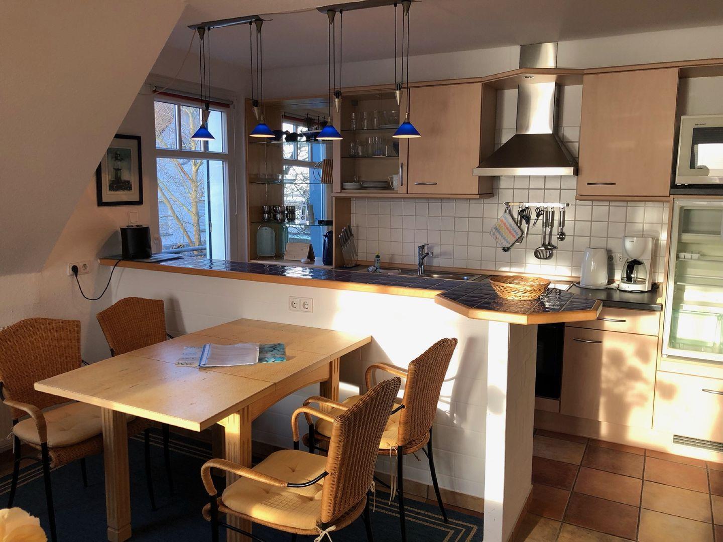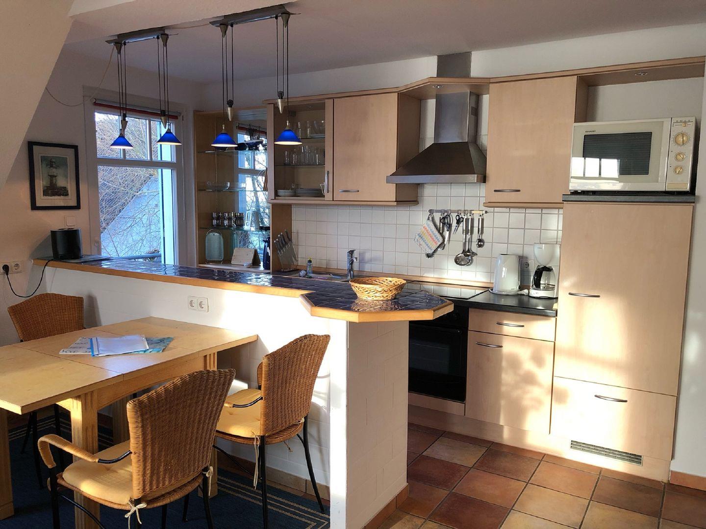 Strand ca. 900 m, Wohnung im 2.Stock, komplett eingerichtete Küchenzeile mit Theke