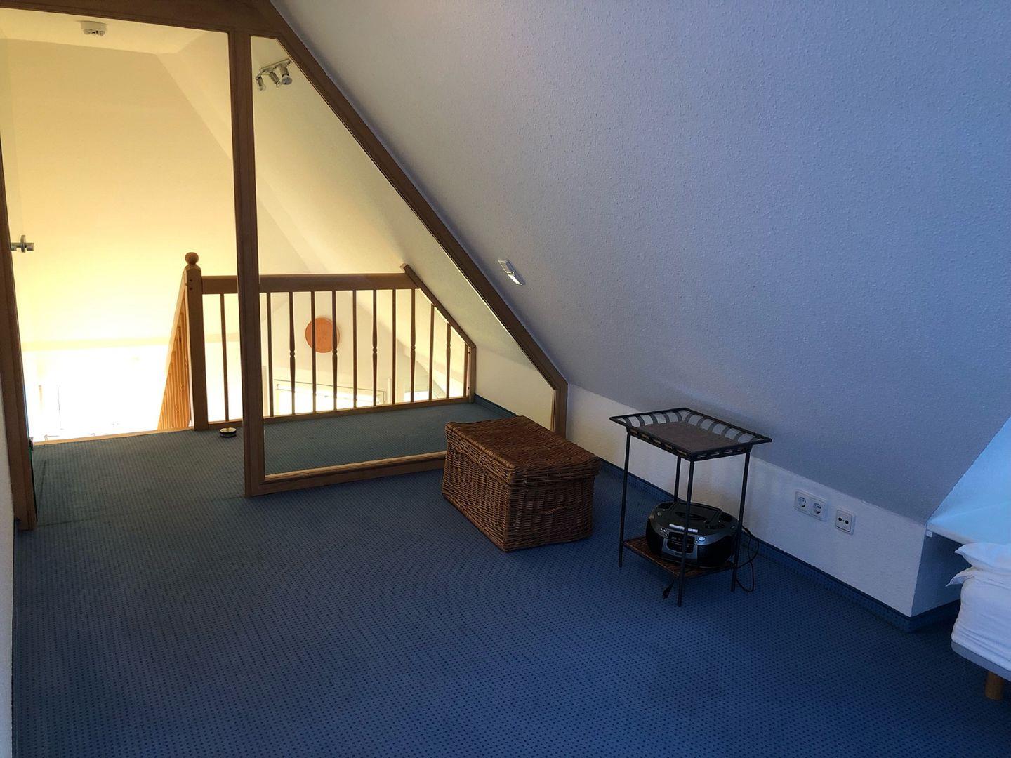 1 Westbalkon, Obergeschoß: separater Wohn/Schlafraum mit Sat-TV, 1 Ostbalkon zum Innenhof, Dusche/WC,