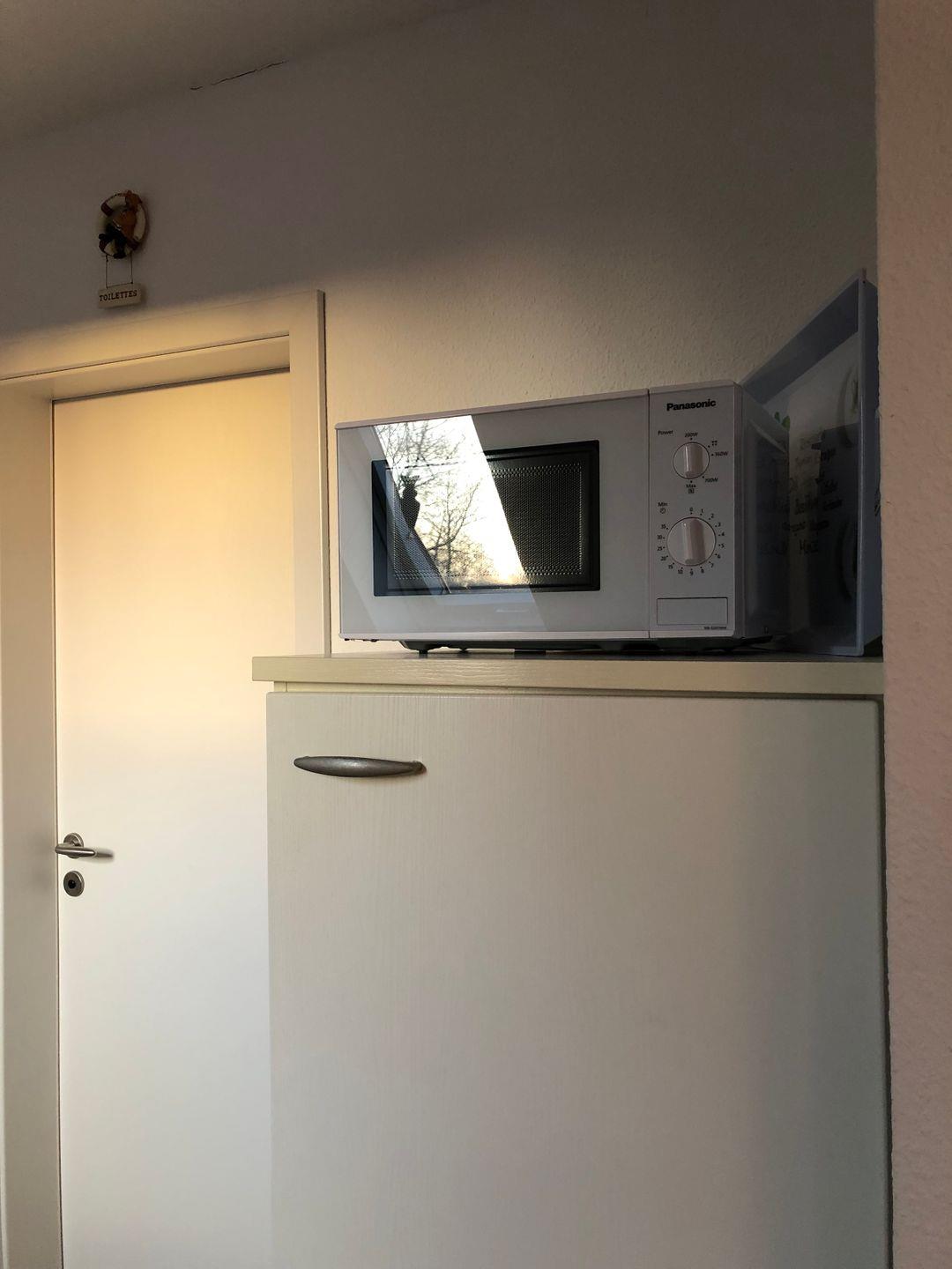 Die Küche verfügt über ein Cerankochfeld, Backofen, Mikrowelle, Kühlschrank mit Gefrierfach, Geschirrspüler und einer Kaffeemaschine + Wasserkocher.