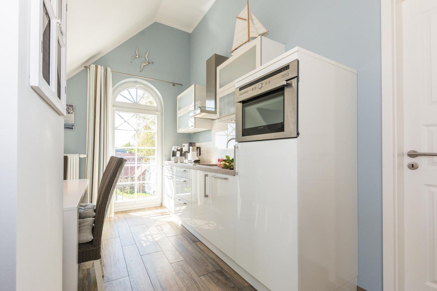 Der integrierte Küchenbereich ist mit Allem ausgestattet, was man auch im Urlaub nicht missen möchte.
