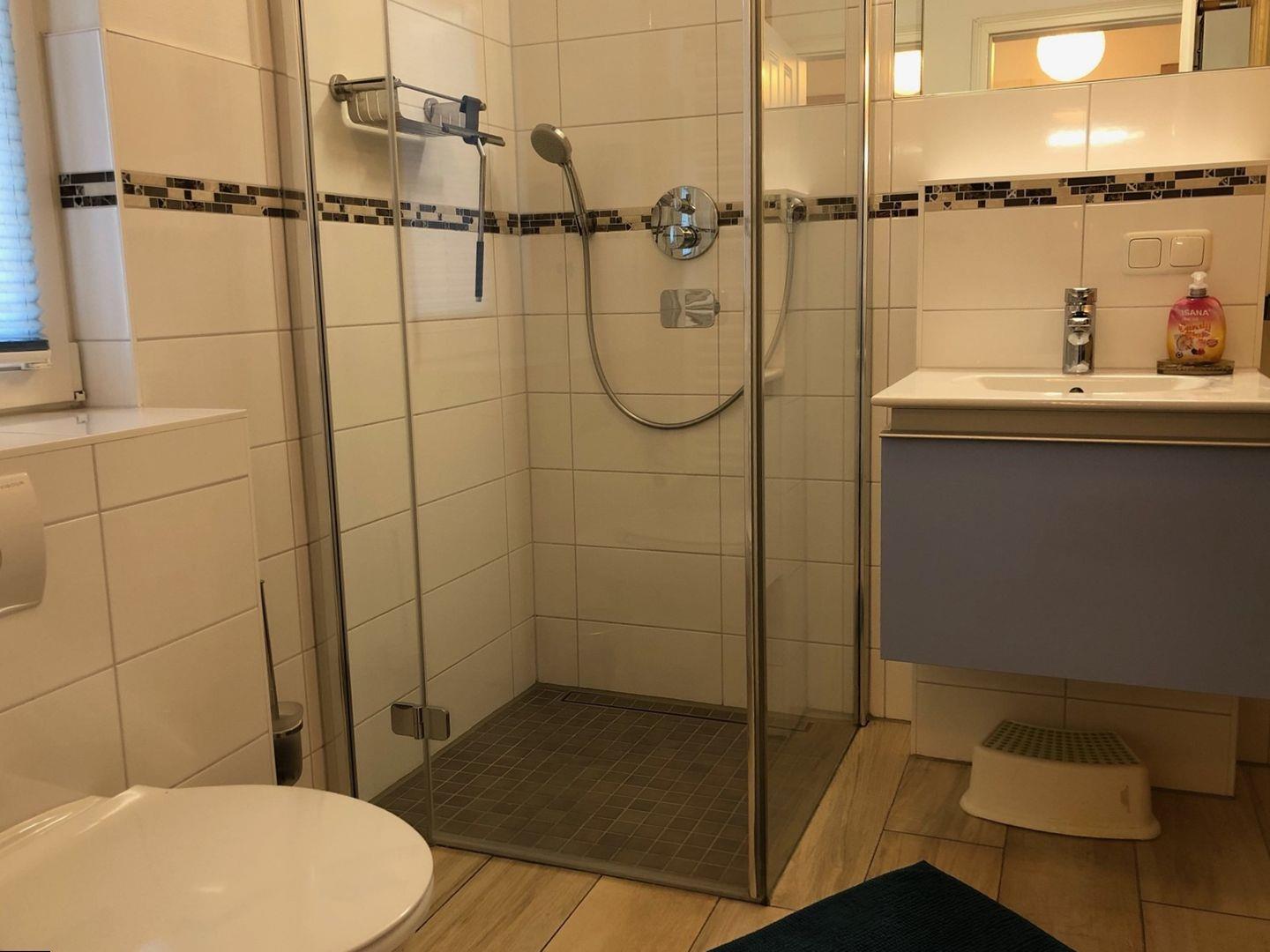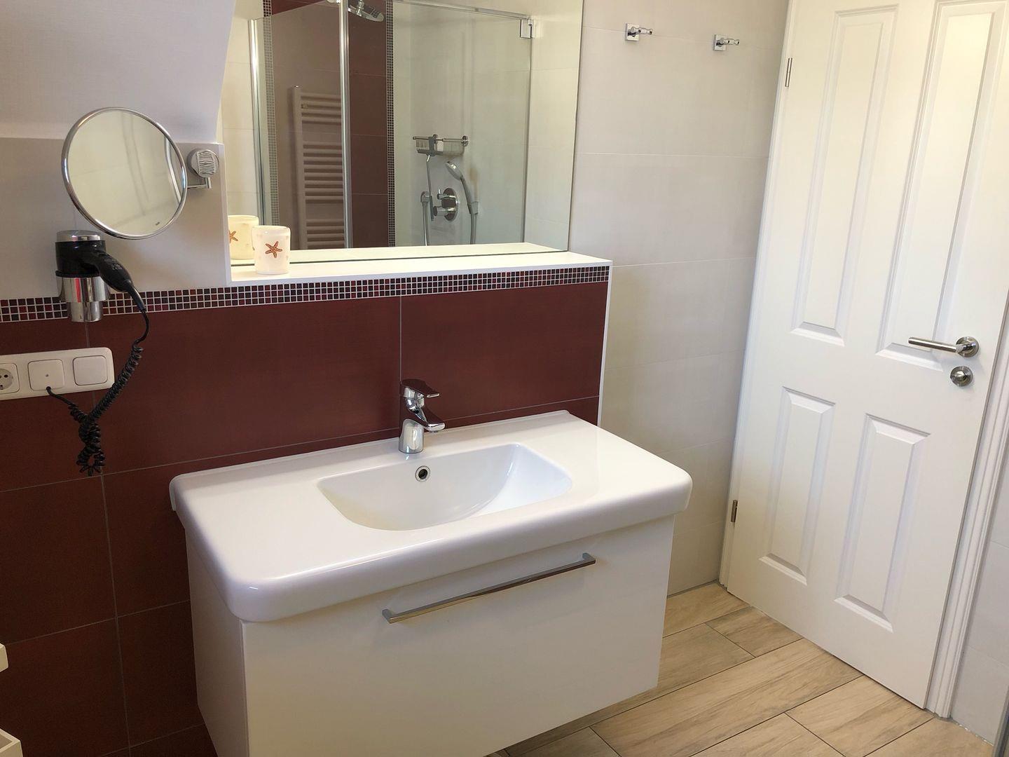 Im 1. OG sind 2 Schlafzimmer für jeweils 2 Personen mit TV und Bad mit Dusche/WC/Radio für Sie hell und freundlich eingerichtet.