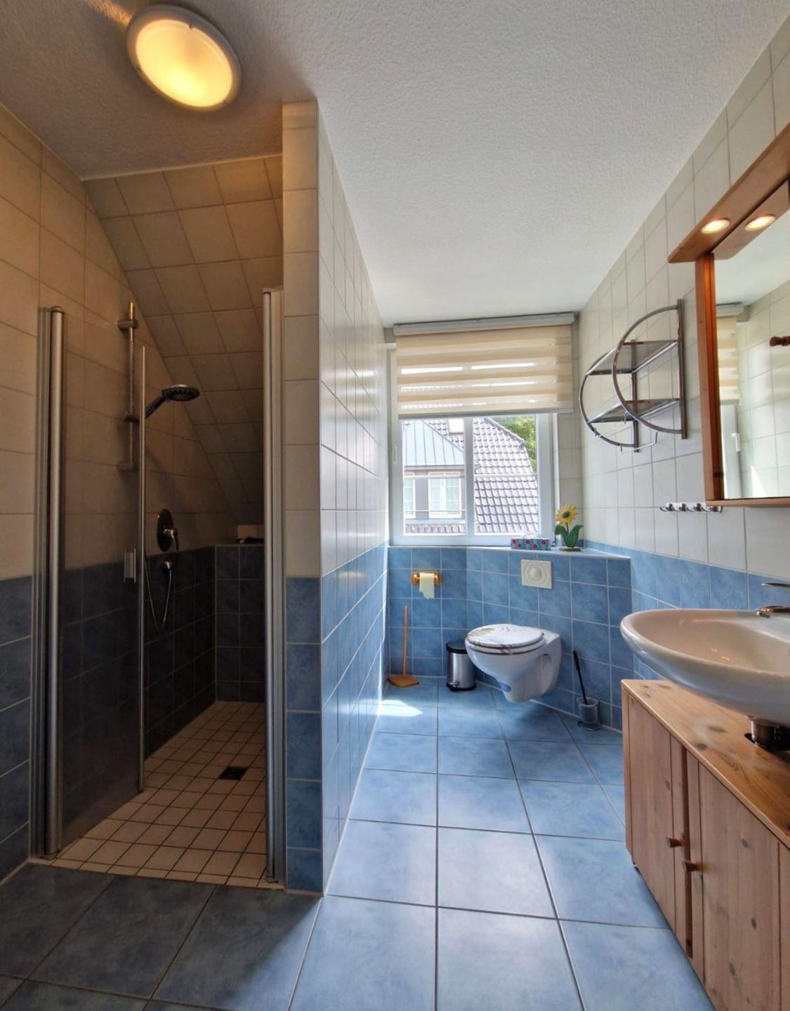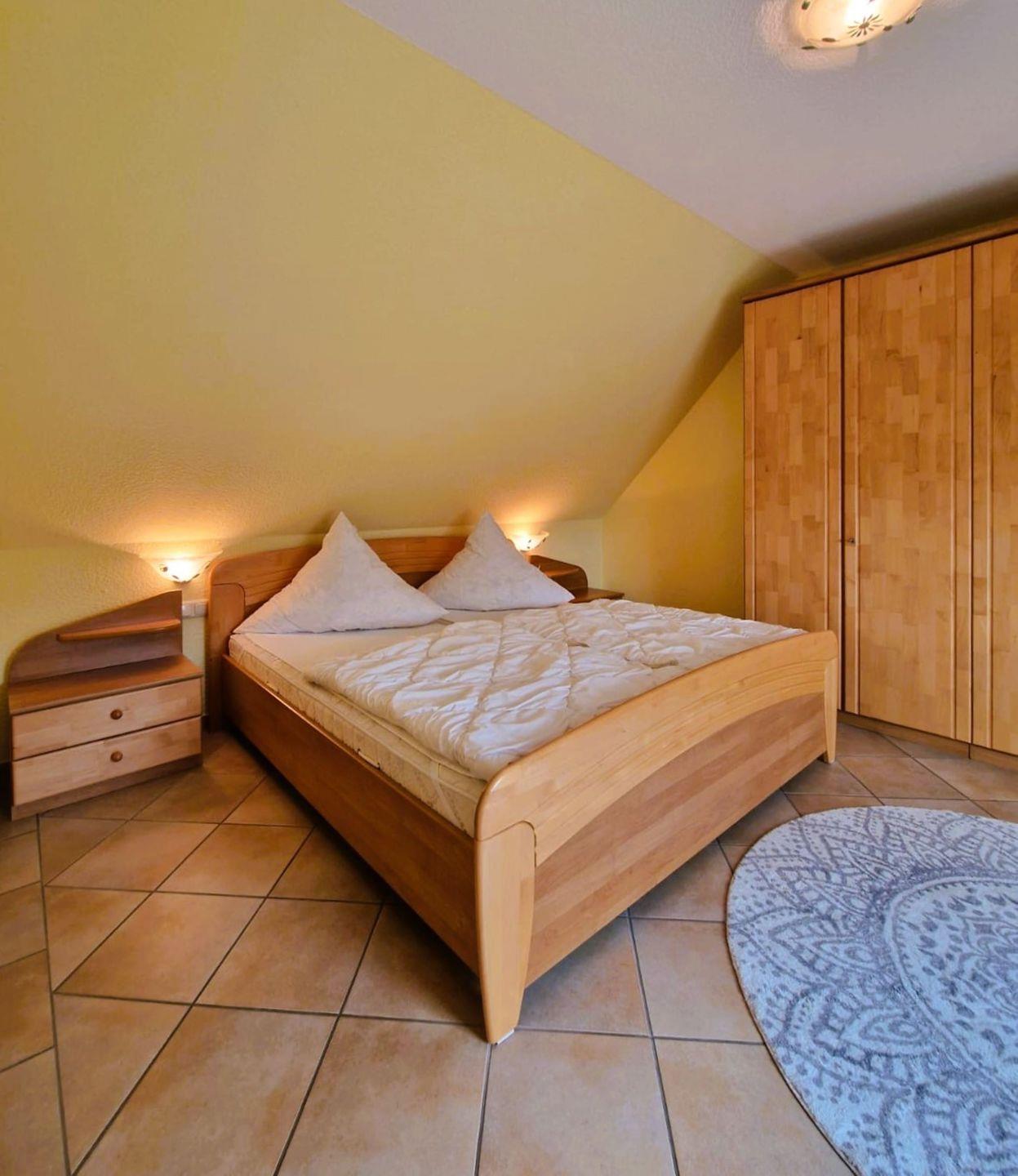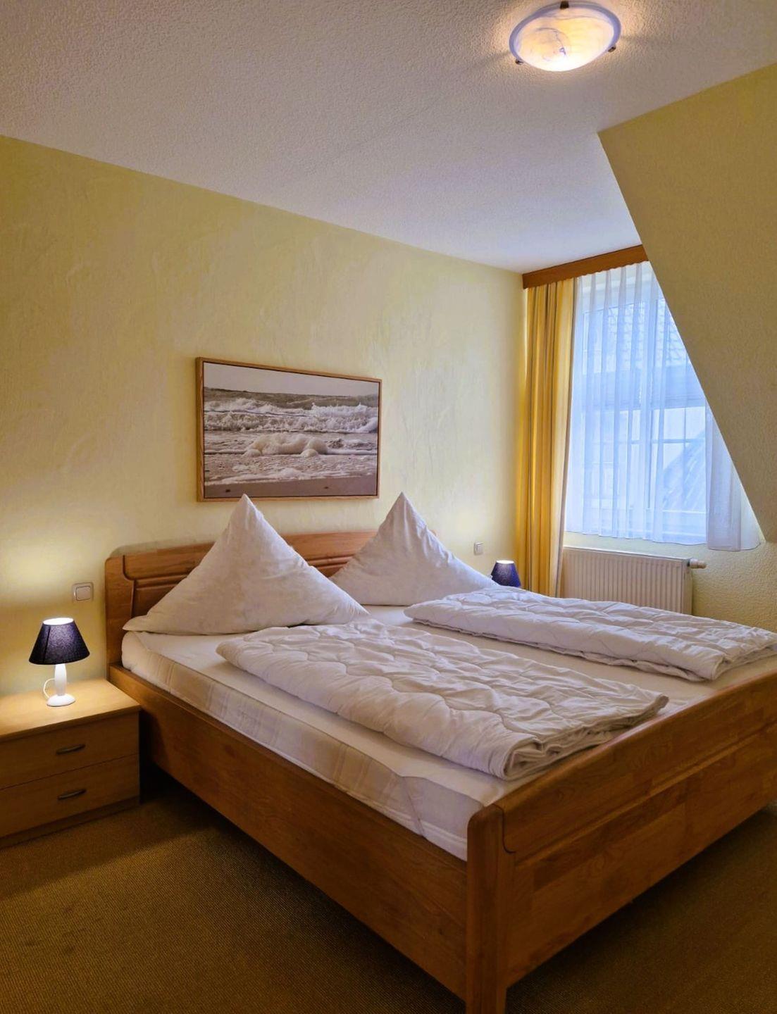 Die Ferienwohnung verfügt über 2 Schlafzimmer mit Doppelbetten und dazu 2 Bäder mit Dusche und Fön, wobei 1 Bad über eine bodengleiche Dusche verfügt,