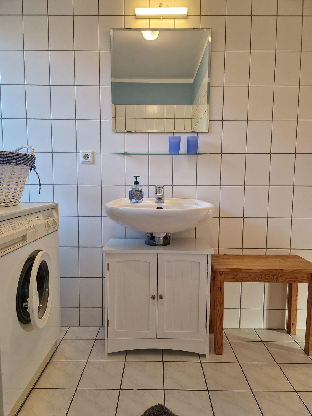 Die Badezimmerausstattung lässt keine Wünsche offen. Sie finden sowohl eine Dusche als auch eine Badewanne, die zur Entspannung einlädt. Zusätzlichen Komfort bieten die Waschmaschine und die Heizung in der Unterkunft.