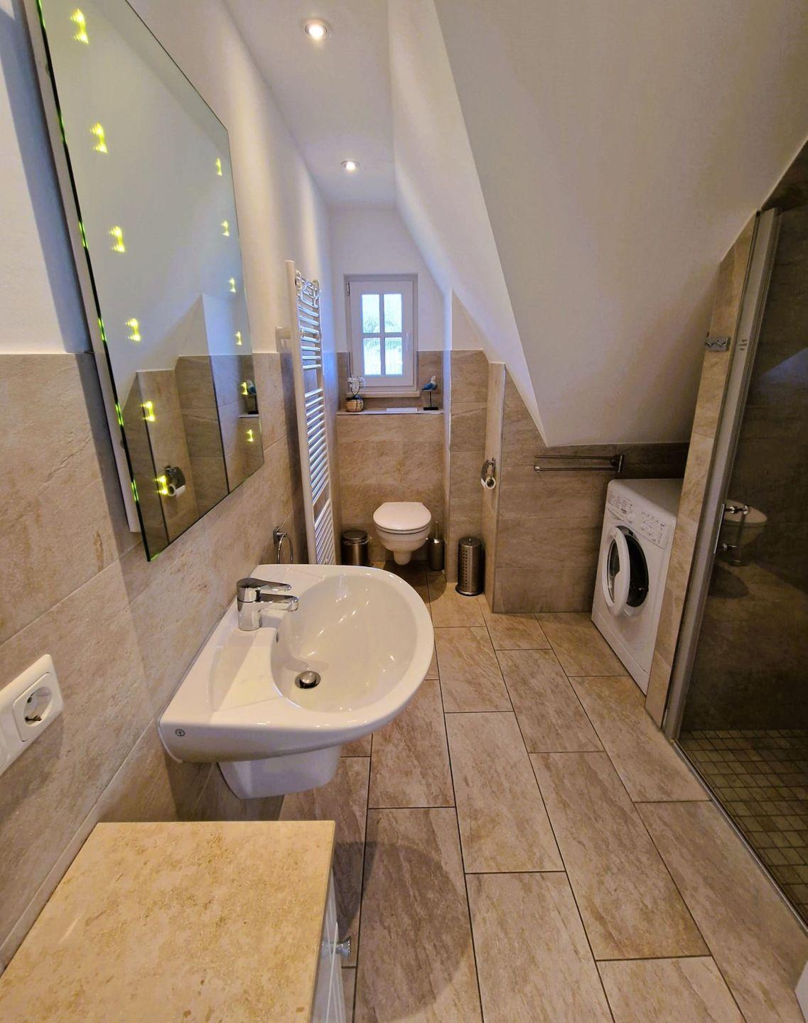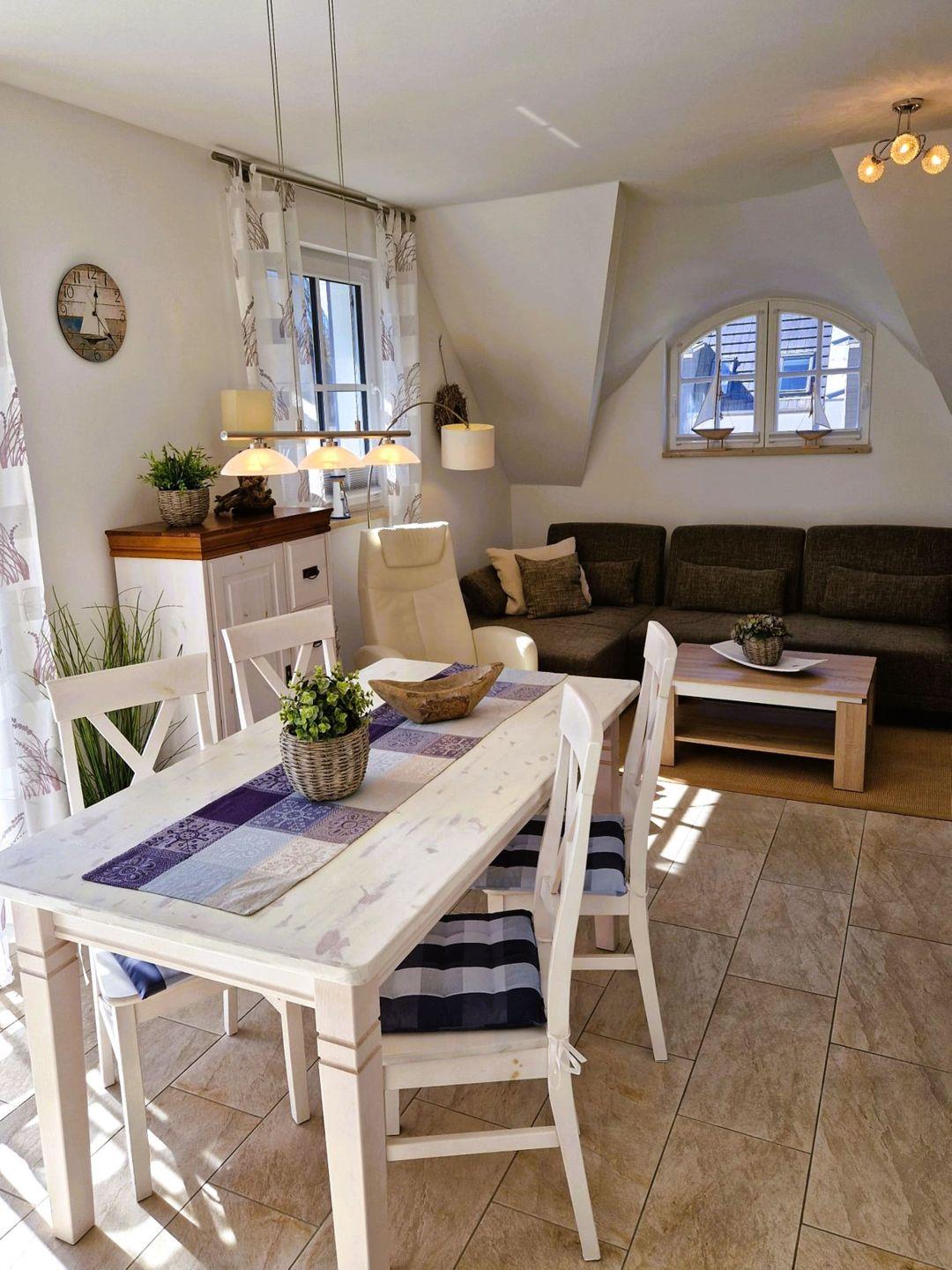 Die 74m² große Maisonettewohnung für 4 Personen liegt in einem 5- Familienhauses, dass im März 2014 im weißen Landhausstil fertiggestellt wurde.( 2022 wurde die Wohnung komplett neu gestrichen)