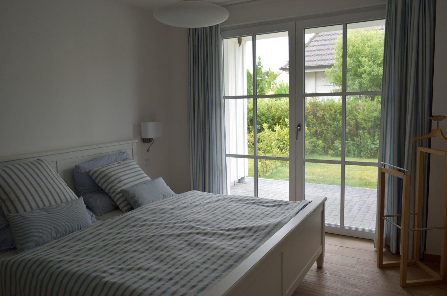 Das große Schlafzimmer ist mit einem Doppelbett, Sat-TV sowie großem Einbauschrank und eigenem Terrassenzugang.